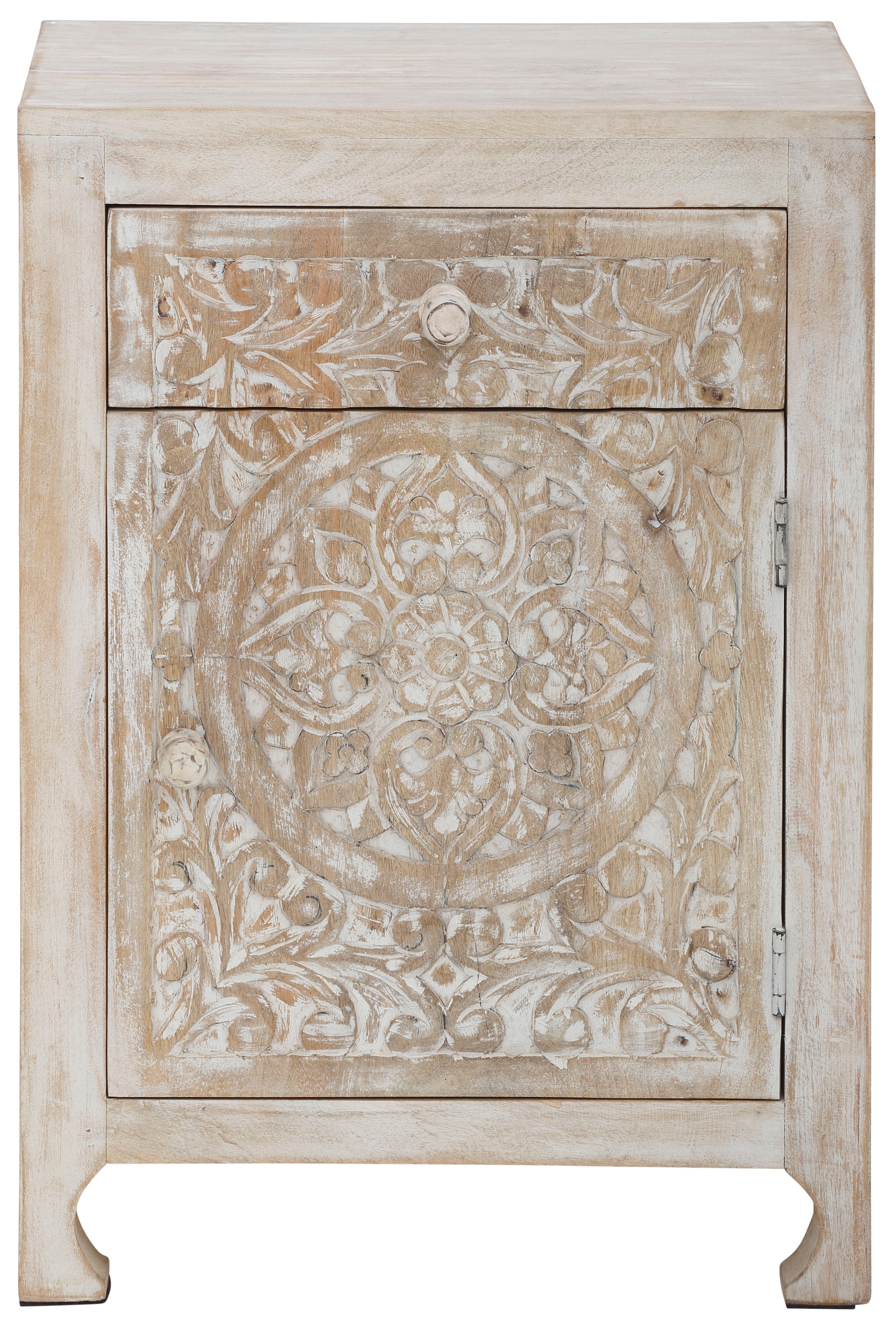 GOODproduct Nachtkommode »Bonstetten« pflegeleichtes Mangoholz, mit dekorativen Schnitzereien, Breite 50 cm