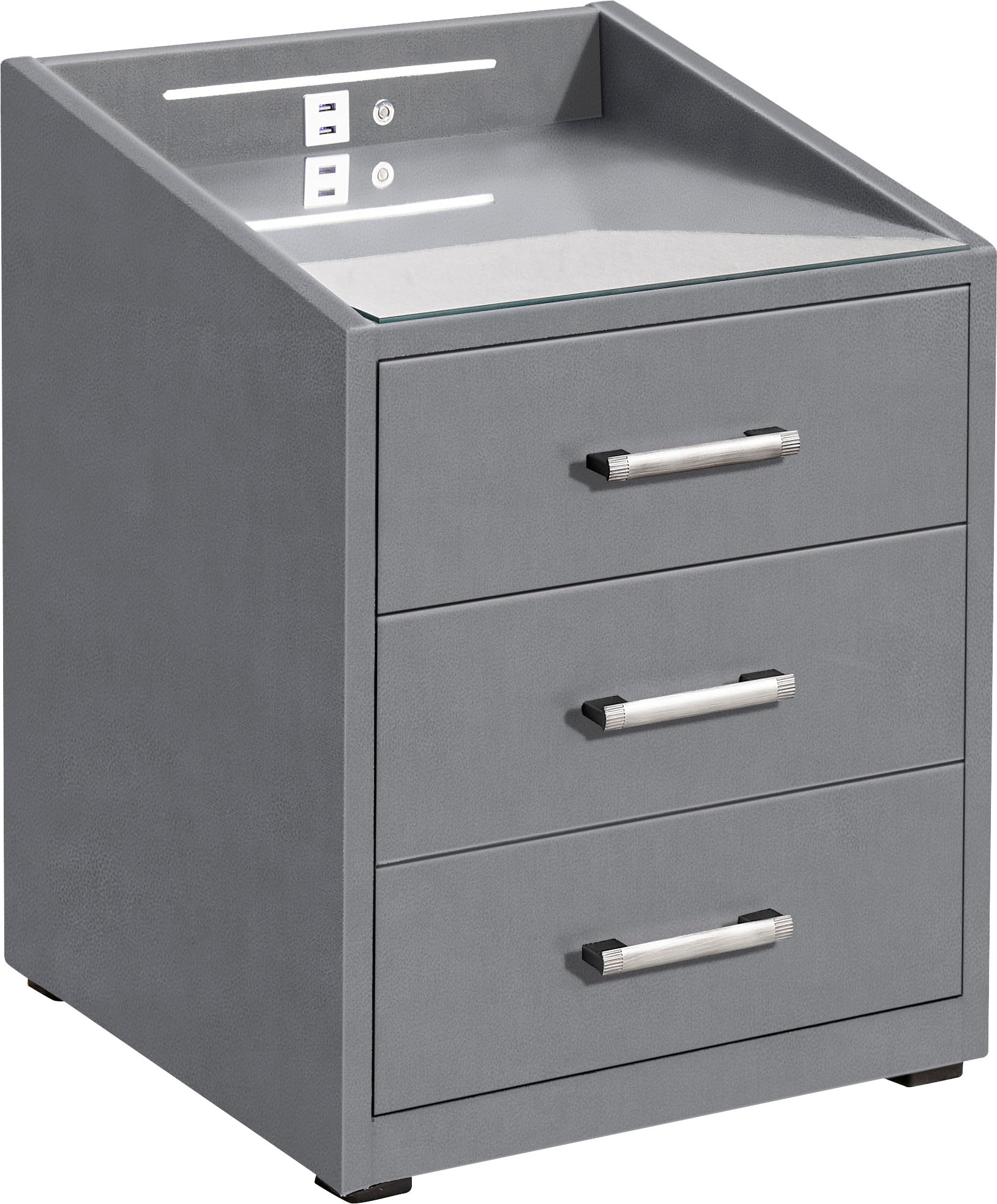 Ausführung | inkl. LED-Beleuchtung und USB-Anschluss;inkl. 3 Schubkästen und einer Glasplatte |
