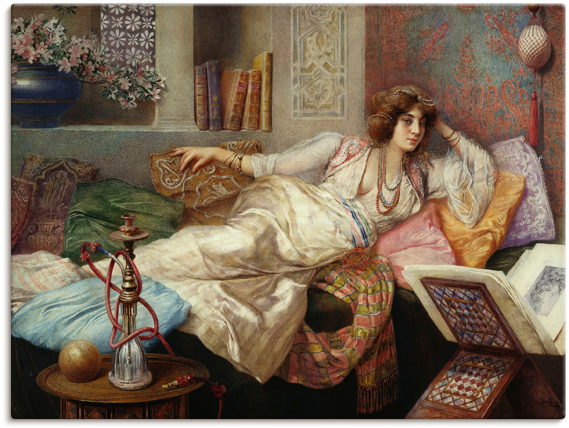 Mit viel Liebe für kunstvolles Wohnen verleiht unser Leinwandbild mit dem Motiv "Die Königin des Harems." von Umberto Cacciarelli Deinem Zuhause Charakter. Es begeistert durch hochauflösende Druckqualität und hochwertige Materialien – Made in Germany.