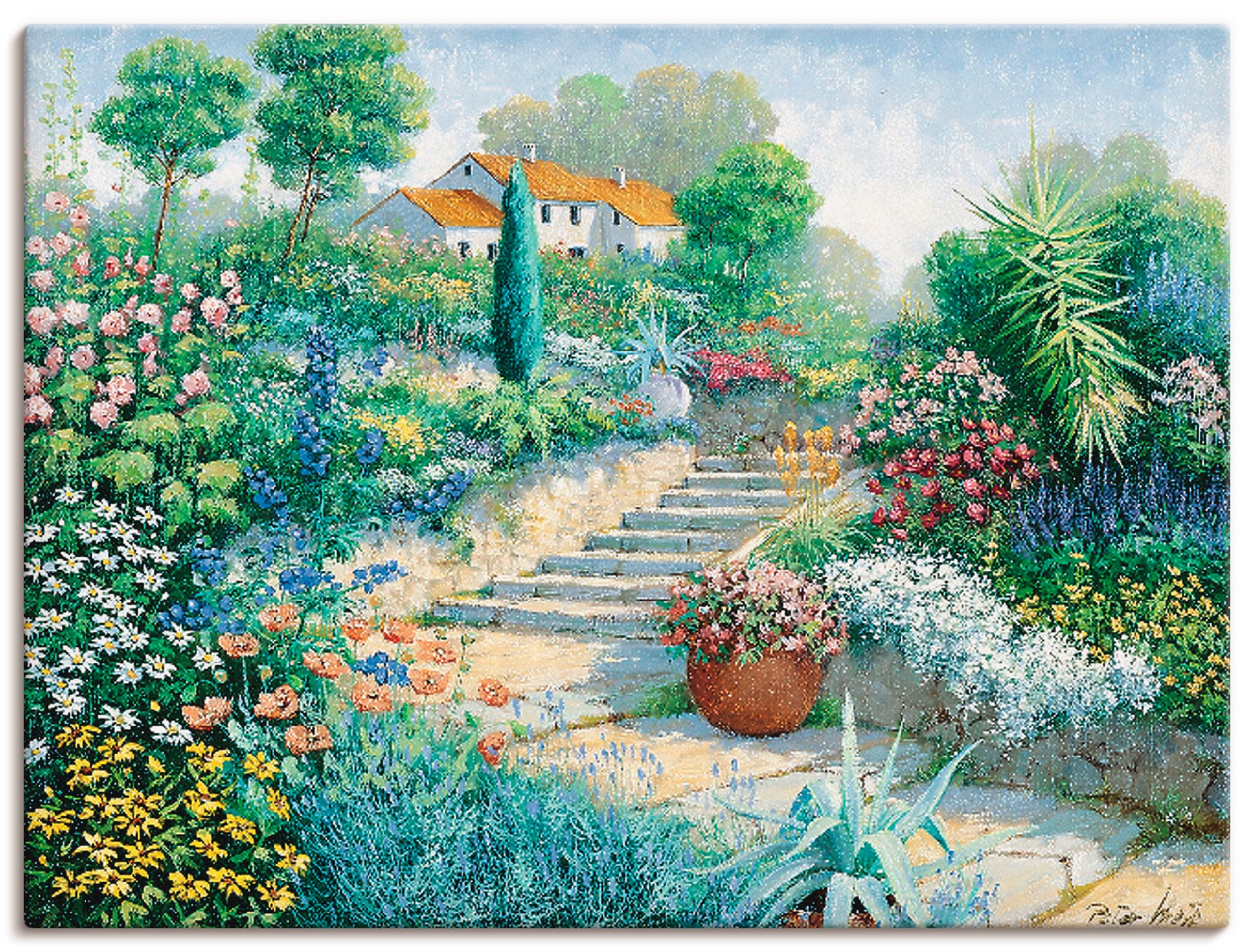 Mit viel Liebe für kunstvolles Wohnen verleiht unser Leinwandbild mit dem Motiv "Ruhiger Garten" von Peter Motz Deinem Zuhause Charakter. Es begeistert durch hochauflösende Druckqualität und hochwertige Materialien – Made in Germany.