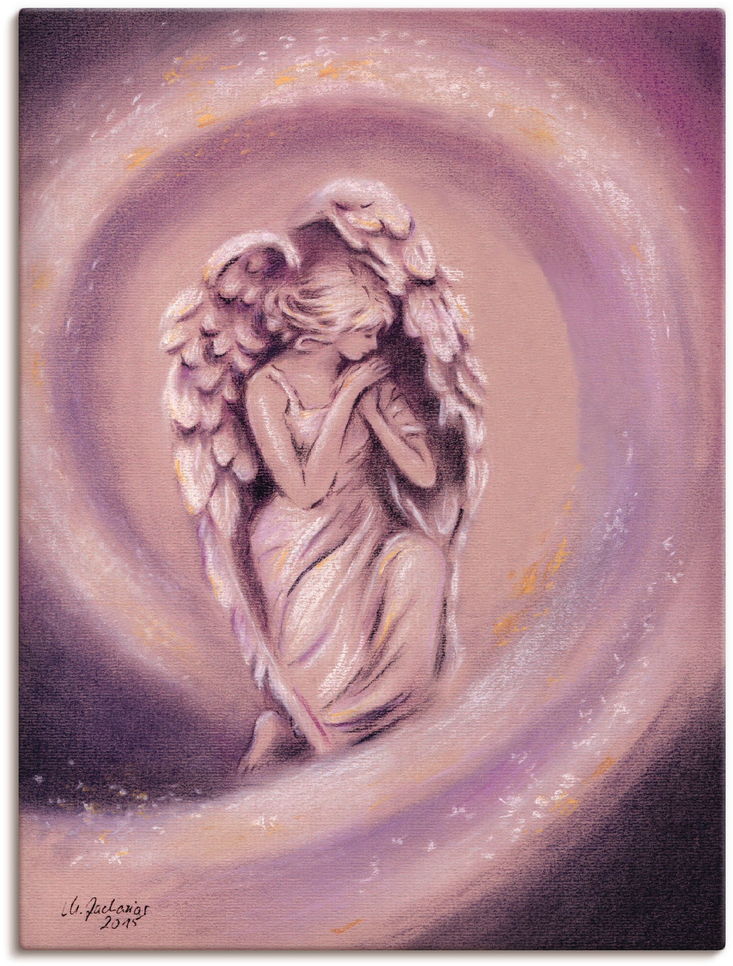 Mit viel Liebe für kunstvolles Wohnen verleiht unser Leinwandbild mit dem Motiv "Engel der Liebe" von Marita Zacharias Deinem Zuhause Charakter. Es begeistert durch hochauflösende Druckqualität und hochwertige Materialien – Made in Germany.