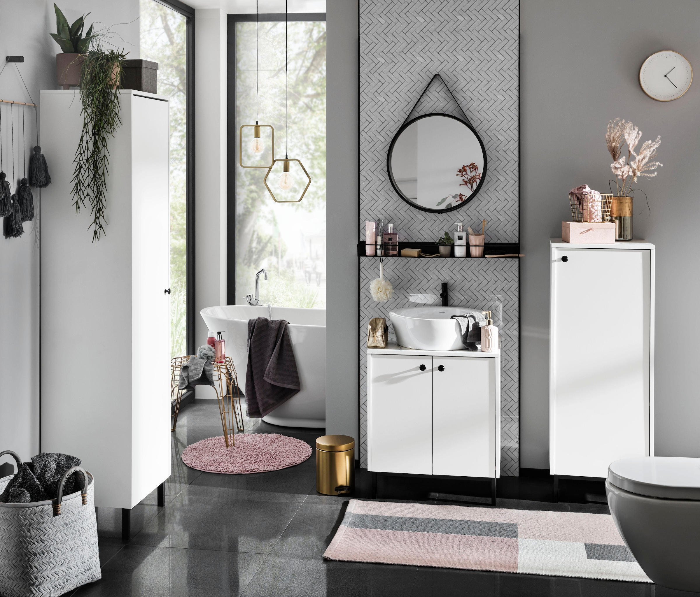 Der extravagante, nach unten breiter werdende, runde Rahmen besticht durch den matten NC-Lack, der für eine zeitlose und elegante Optik sorgt. Gleichzeitig macht die Beschichtung das Produkt äusserst pflegeleicht.
