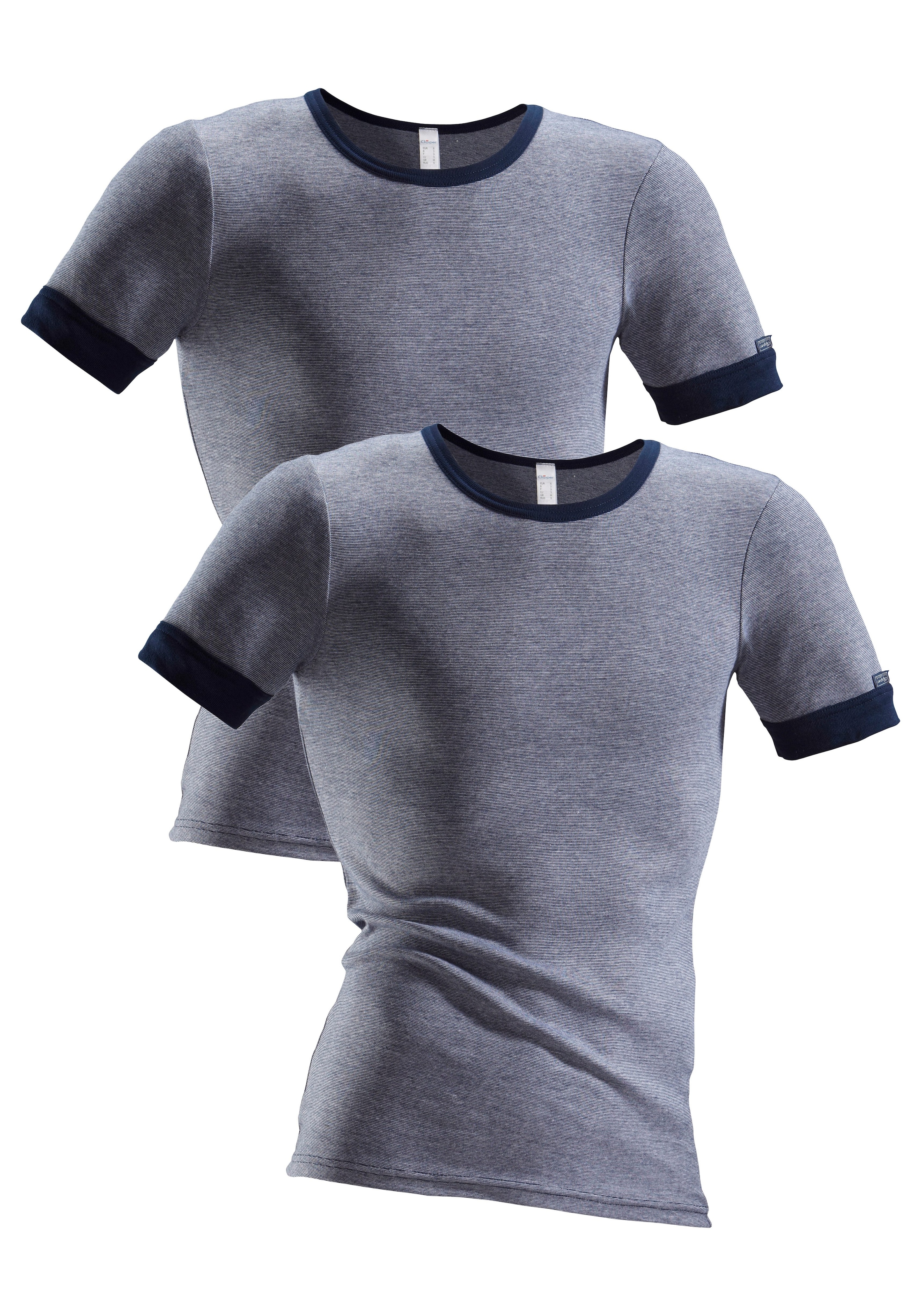 Exklusive Qualität in modischer Optik: jeans meliert. Mit Rundhalsausschnitt und Paspeln in Marine. Mit ¼-Arm. Im 2er-Pack. Aus 100% Baumwolle.