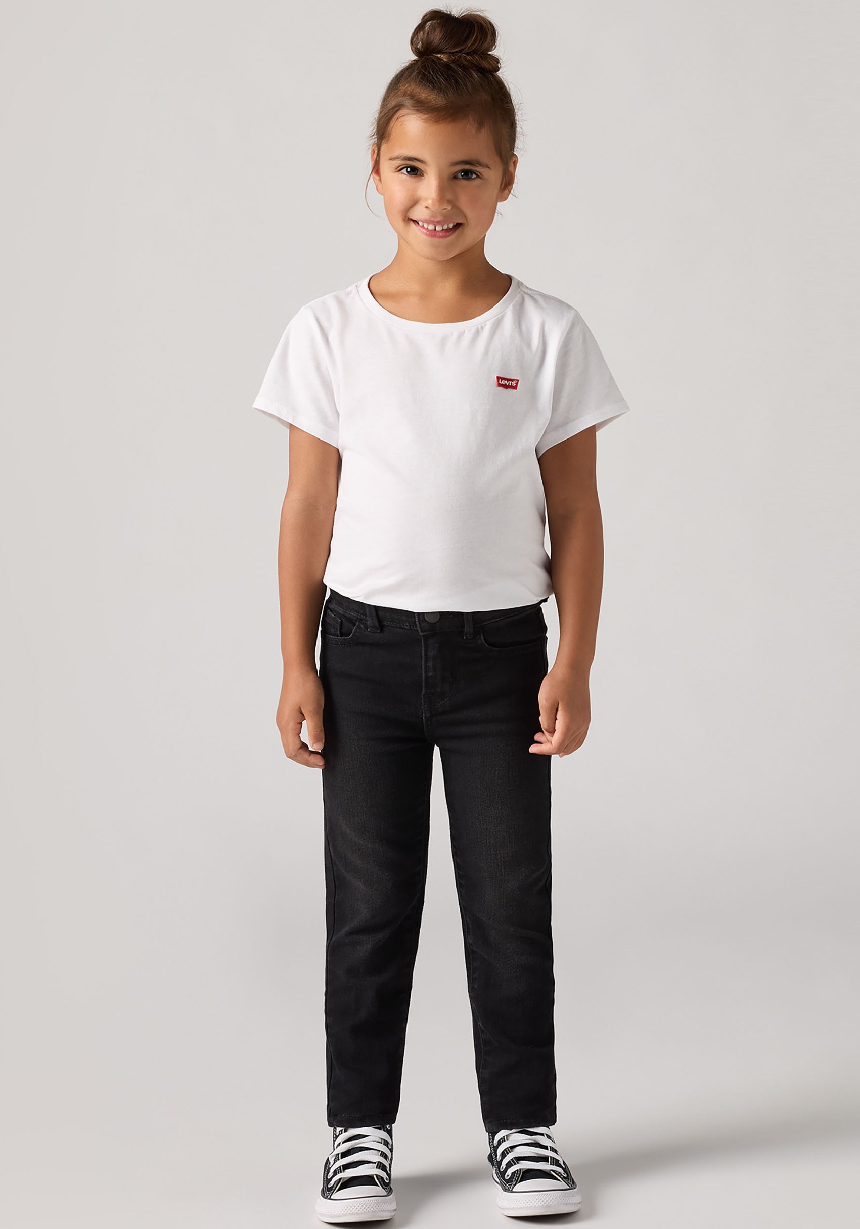 Komfortable Stretch-Jeans für Mädchen der Marke Levi's® Kids. Passt sich den Bewegungen an und engt nicht ein. Diese Hose erscheint mit normal geschnittener Bundhöhe. Die Jeans macht dank dem unempfindlichen Material aus Denim auch Bike-Touren mit.