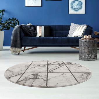 Carpet City Teppich »In-& Outdoorteppich Santorini 457, 3D-Effekt, Raute-Look« rund 5 mm Höhe Wetterfest & UV-beständig für Terrasse, Balkon, Küche, Flur