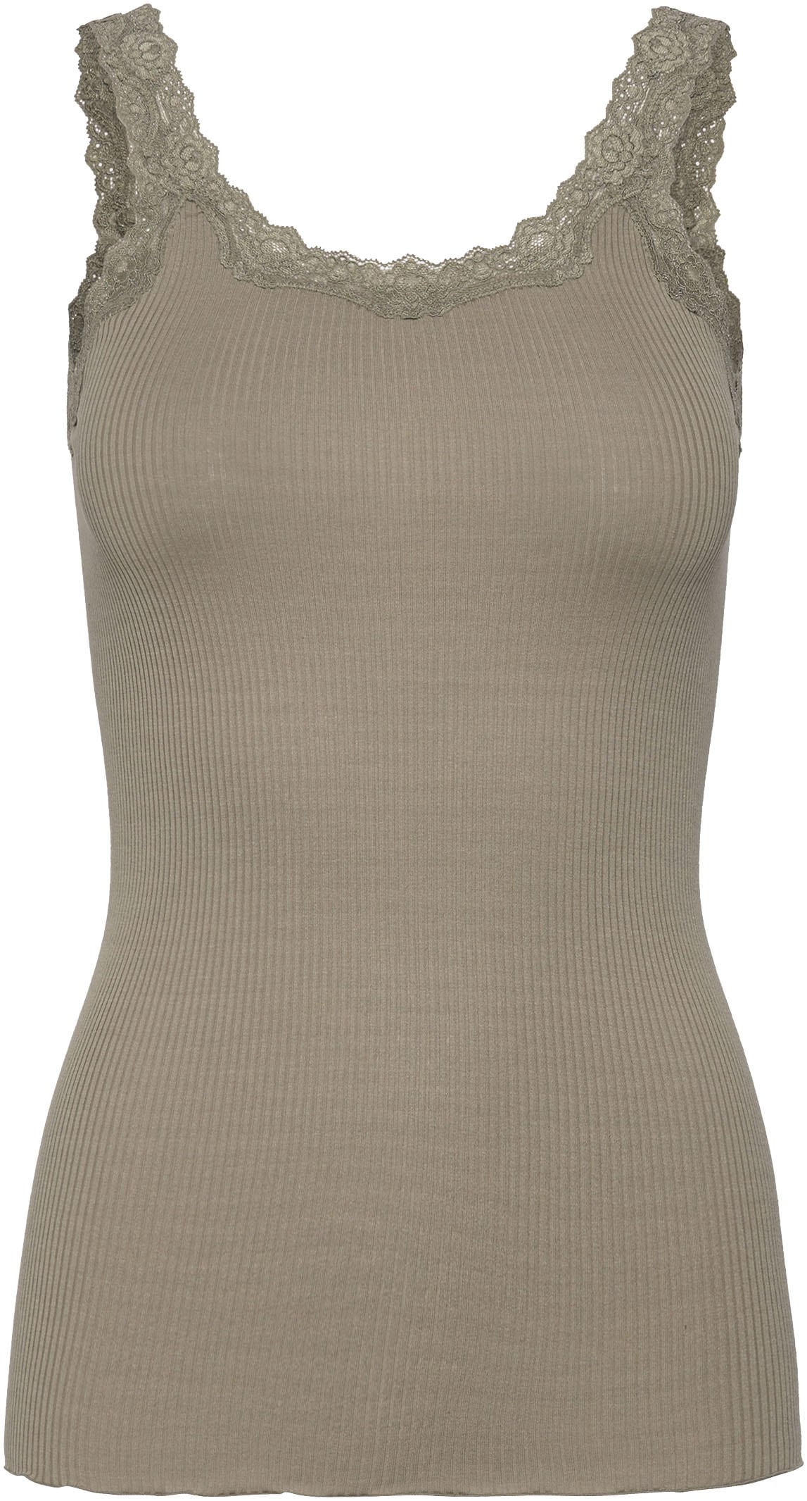 - V-Ausschnitt und Träger mit Spitzenbesatz