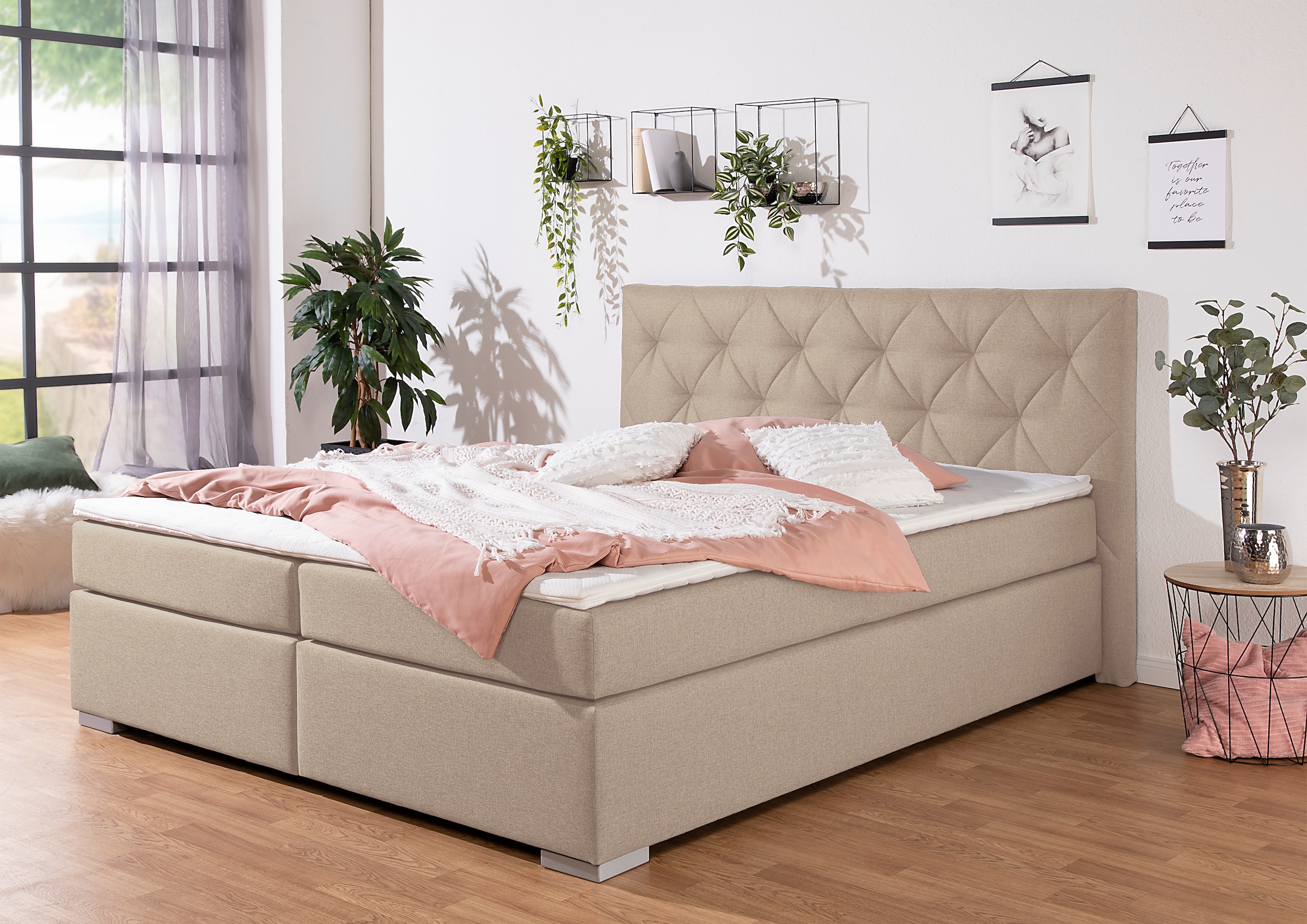 Home affaire Boxbett »Alfie, Bestseller, wahlweise mit Bettkasten« mit Strasssteinen im Kopfteil, H2, H3 und H4 wählbar