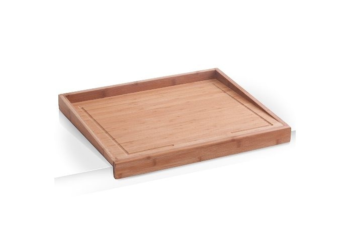 Dieses extra grosse Back- und Tranchierbrett ist aus edlem Bambusholz gefertigt. Es zeichnet sich durch seine hohe Oberflächenhärte aus und ist aufgrund seiner messerschonenden Eigenschaften die ideale Schneidefläche für hochwertige Messer. Das Brett ist rundum mit einer Saftrille versehen und eignet sich dadurch ideal zum Tranchieren und Zerteilen von Fleisch und Geflügel. Die Anschlagleiste hält das Brett jederzeit an Ort und Stelle und Dank der dreiseitigen Einfassung bleibt das Schnittgut dort wo es sein soll.