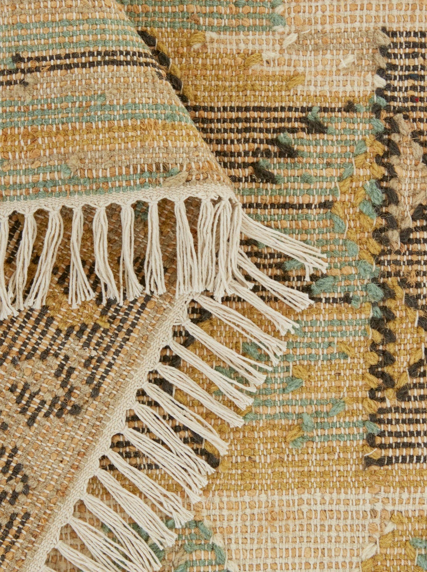 Teppich Handgeknüpfter Kelim in angesagter 3-D-Optik. Leichte Form-, Farb- und Massabweichungen möglich. 41% Jute, 40% Wolle, 18% Baumwolle, 1% Polyester.