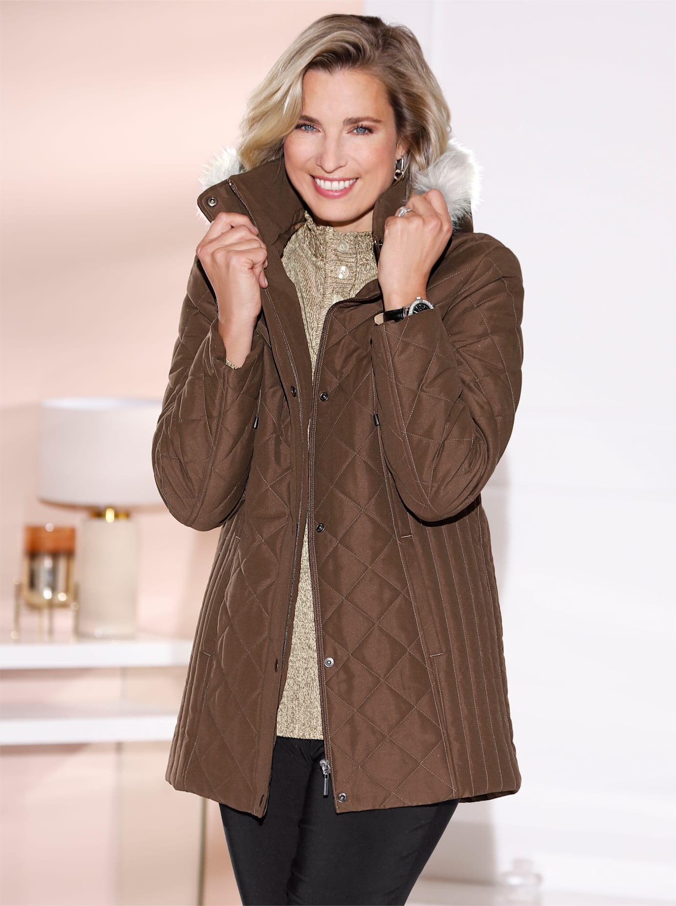 • Steppjacke mit abzippbarer Kapuze und abnehmbarem Kunstfell