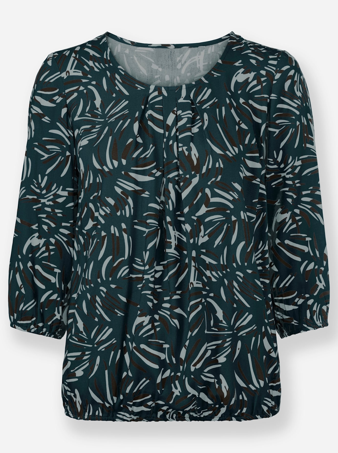 Herrlich trageangenehme Bluse in blickfangstarkem Druck-Dessin. Rundhals-Ausschnitt mit Falten. Elastische Abschlüsse an den 3/4-Ärmeln und am Saum. Viskose in ECOVERO-Qualität von Lenzing. 100% Viskose (ECOVERO). Maschinenwäsche.