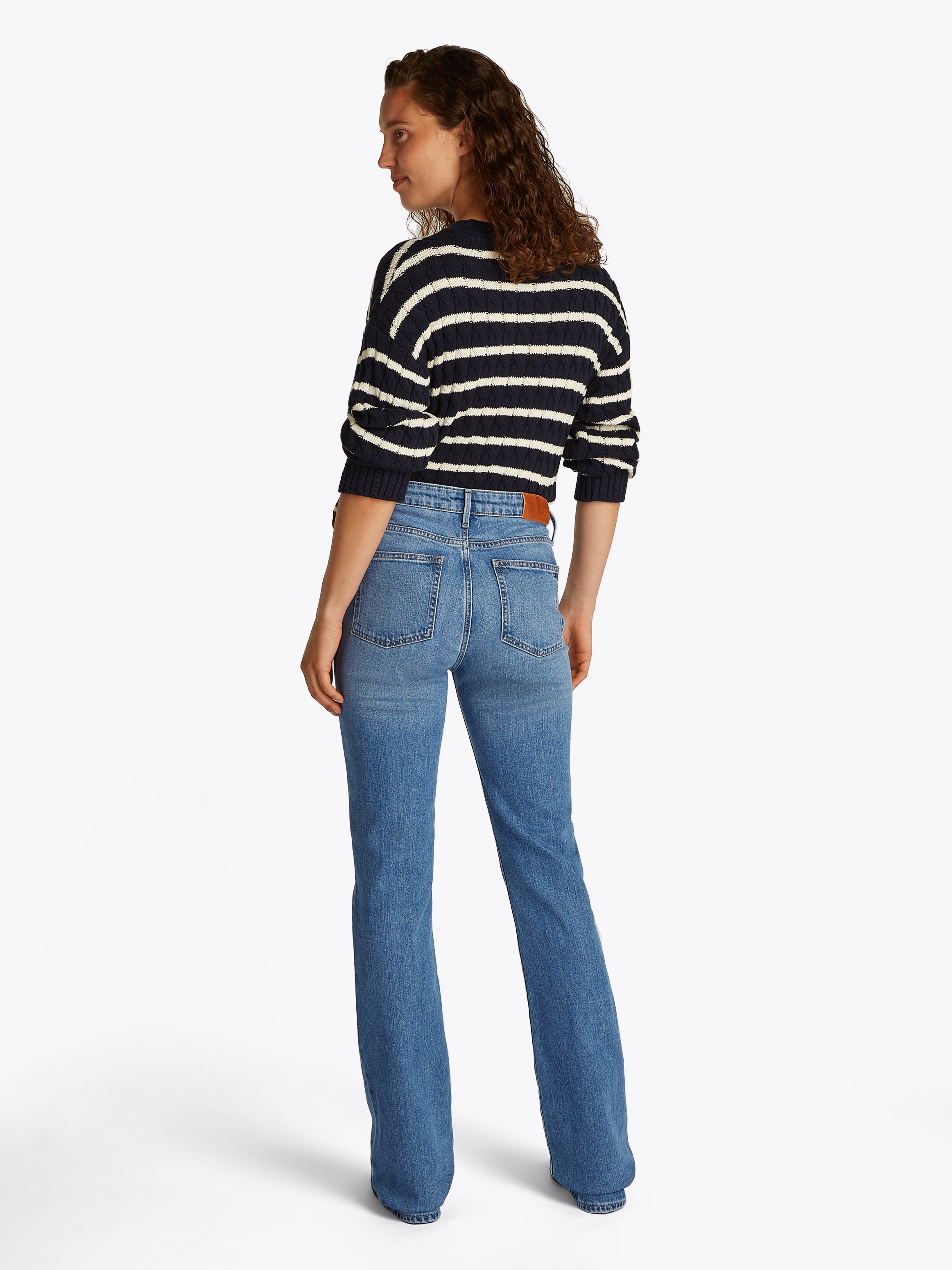 Facettenreiche Damen-Bootcut-Jeans von Tommy Hilfiger. Mit nach unten weiter werdender Beinform und klassischer Leibhöhe. Verziert mit einem Markenlabel. Vielseitig kombinierbar für die Freizeit. Durch die unempfindliche Jeansqualität ist die Hose sehr beständig und pflegeleicht.