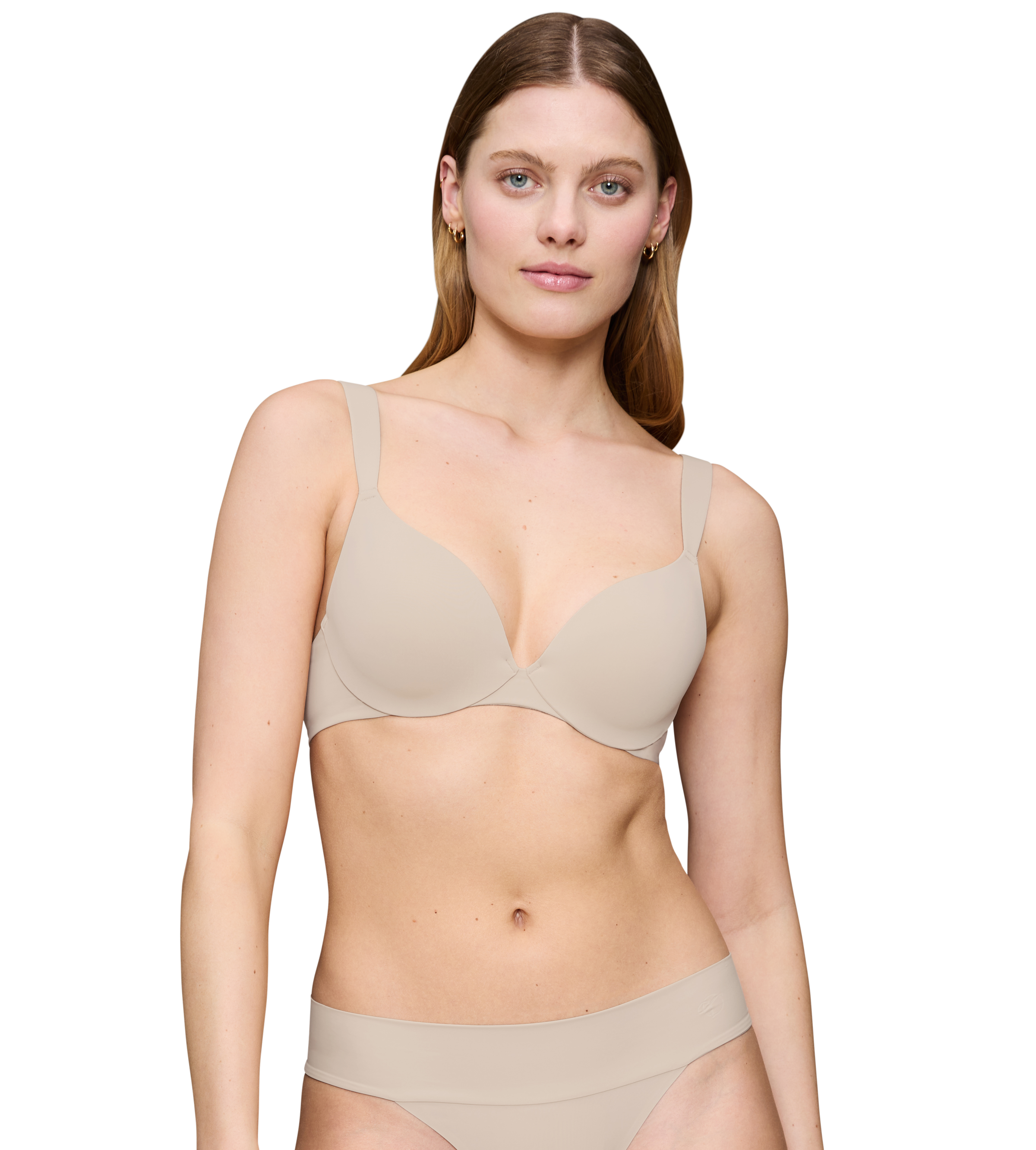 Ein tief geschnittener gefütterter Lift-up-BH mit flexiblem Bügel und speziellen zentrierenden Cups mit unsichtbaren Kanten. Die integrierte Cup-Einlage reguliert den Halt – stärker für kleine, sanfter für grosse Brüste. Ein BH, auf den frau sich verlassen kann und den sie nicht spürt. Aus seidenweichem GRS-zertifiziertem Recycling-Polyamid.