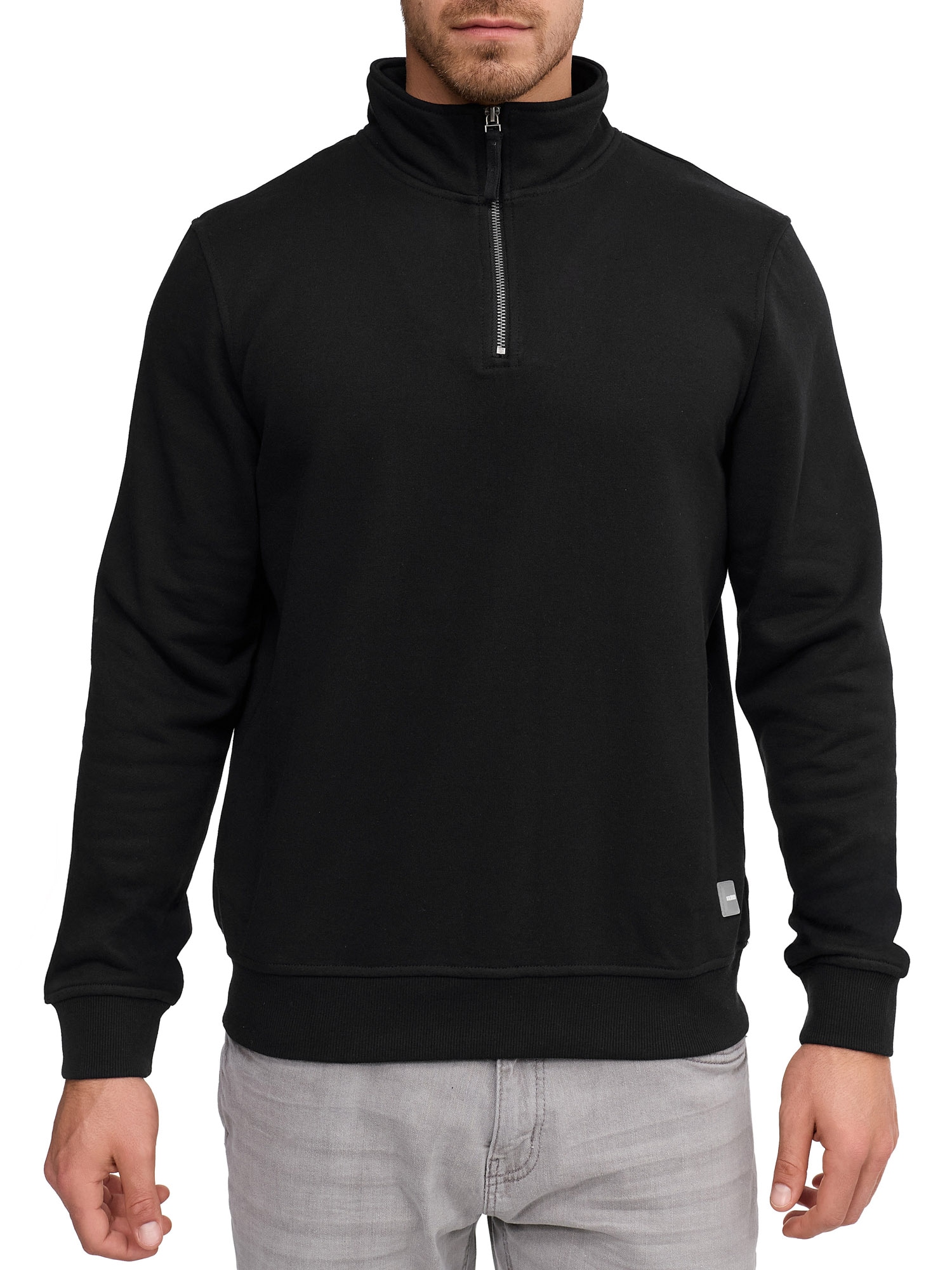 Aktueller Herren-Sweater der Marke Indicode. Mit einem hüftlangen und normalen Schnitt. Die Ärmel sind lang. Ausserdem hat das Sweatshirt einen Reissverschluss. Durch die weiche Sweat-Qualität fühlt sich das Oberteil weich auf der Haut an.