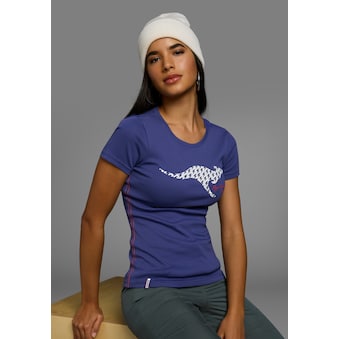 Kombistarkes Damen-T-Shirt der Marke KangaROOS mit Aufdruck. Mit einem hüftlangen und normal breiten Schnitt. Kombinierbar für das Freizeit-Outfit. Das Oberteil aus dehnbarem und weichem Single Jersey sorgt für hohen Tragekomfort.