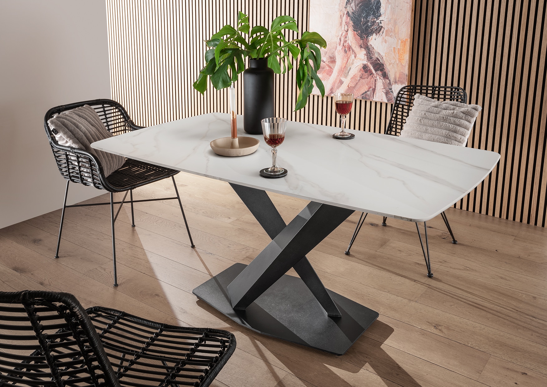 • Tischplatte aus durchgehenden Lamellen