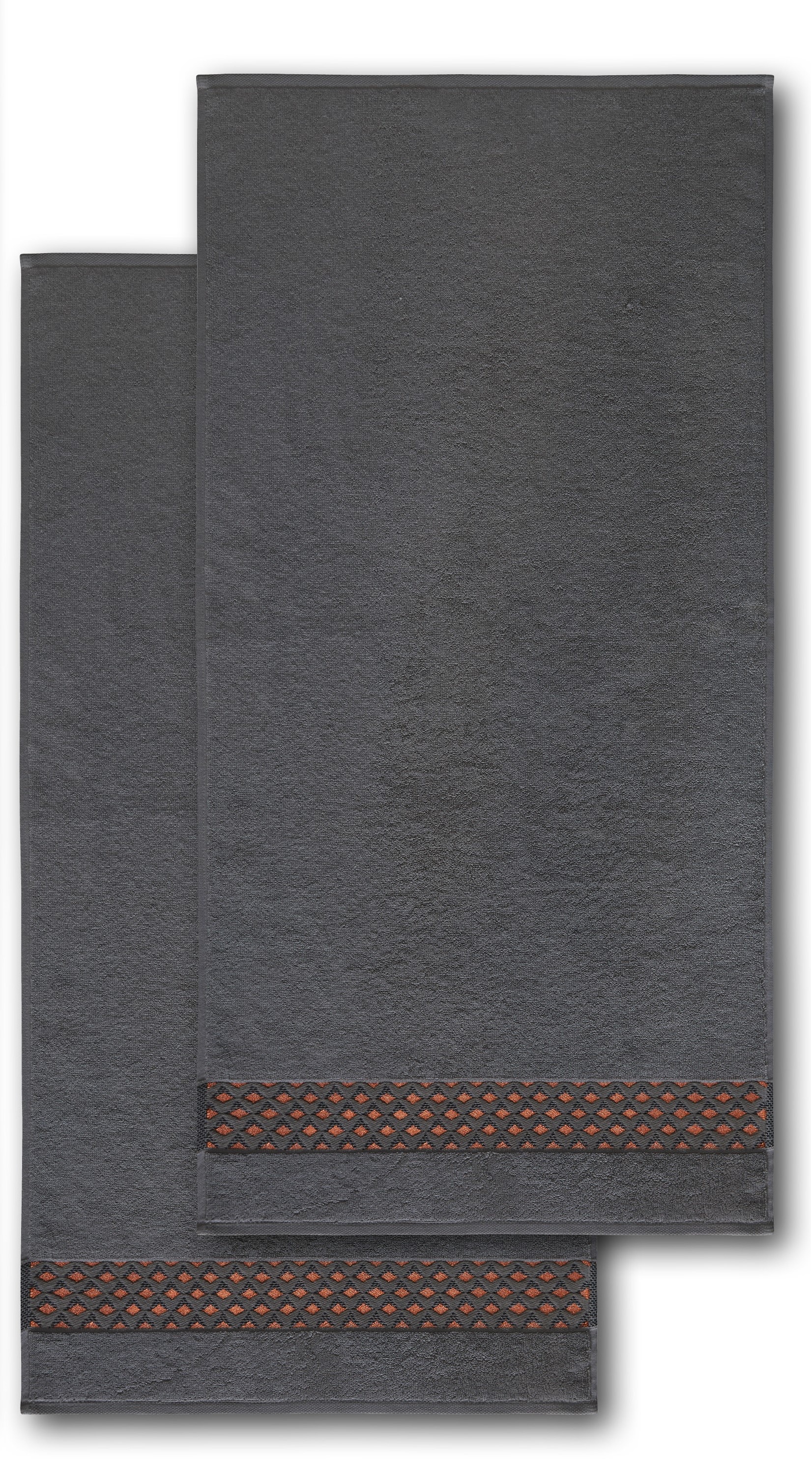 Das 2er-Set Handtücher "Mesh" kombiniert zeitloses Design mit hochwertiger Verarbeitung und setzt stilvolle Akzente in Ihrem Badezimmer. Die kunstvoll gestalteten Bordüren mit schimmernden Kupfereffekten verleihen den Handtüchern eine edle Optik. Hergestellt in Deutschland und aus 100 % hochwertiger Baumwolle gefertigt, überzeugt dieses Set durch seine besondere Weichheit, Langlebigkeit und Strapazierfähigkeit. Mit einem Flächengewicht von ca. 500 g/m² sind die Handtücher angenehm flauschig und gleichzeitig saugstark.