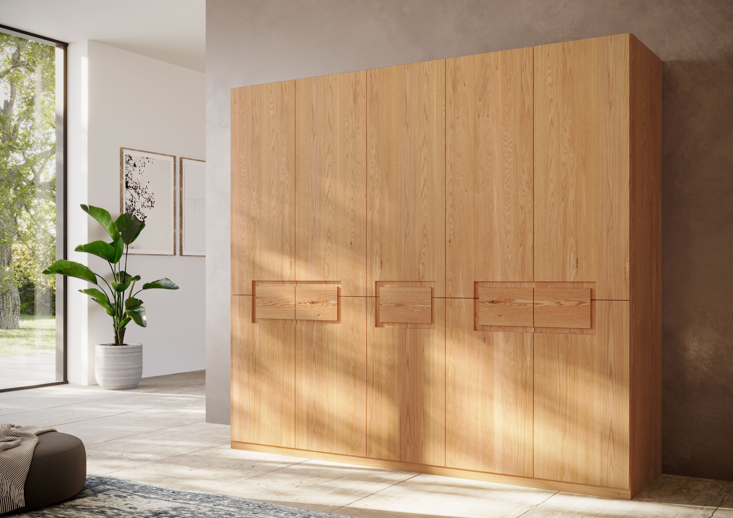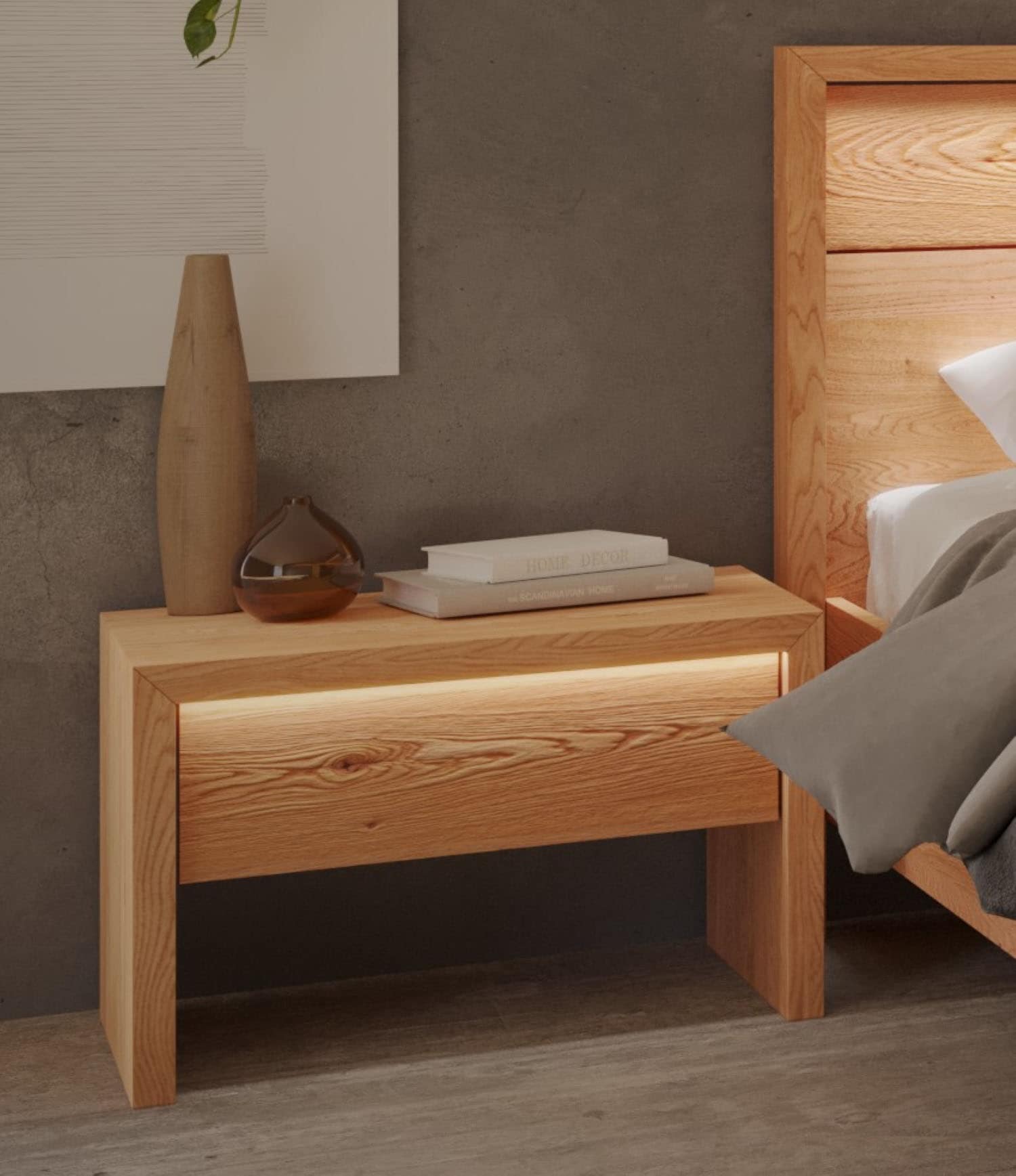 Details Kopfteil | Kernbuche, Massivholz, natur geölt;Rahmen-Optik, breiter Rahmen;Rahmen auf Gehrung gefügt;Rauhholzeinsatz, beleuchtet von LED`s |