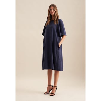 Vervollständigt Ihr Outfit und sollte in keiner Garderobe fehlen: Dieses Midi-Kleid aus der "The Connecting Neutrals" Kollektion von Seidensticker überzeugt durch modischen Schnitt. Ob Freizeit oder Büro - es ist ein eleganter Begleiter, der durch schlichte Eleganz überzeugt. Krepp stellt sich als ideale Leinwand für Ihre ganz eigenen Outfit-Variationen dar. In Kombination mit 100% Polyester ist es besonders ansprechend. Als moderner Schnitt liegt das Kleid leger und weniger eng an und schafft so optimalen Tragekomfort. Dieses elegante Kleid bildet die perfekte Grundlage für ein modisches Outfit. Ein Rundhals-Ausschnitt sowie ein Stehkragen unterstreichen den nostalgisch-smarten Charakter. Ausserdem sind edle Steinnussknöpfe verarbeitet worden.