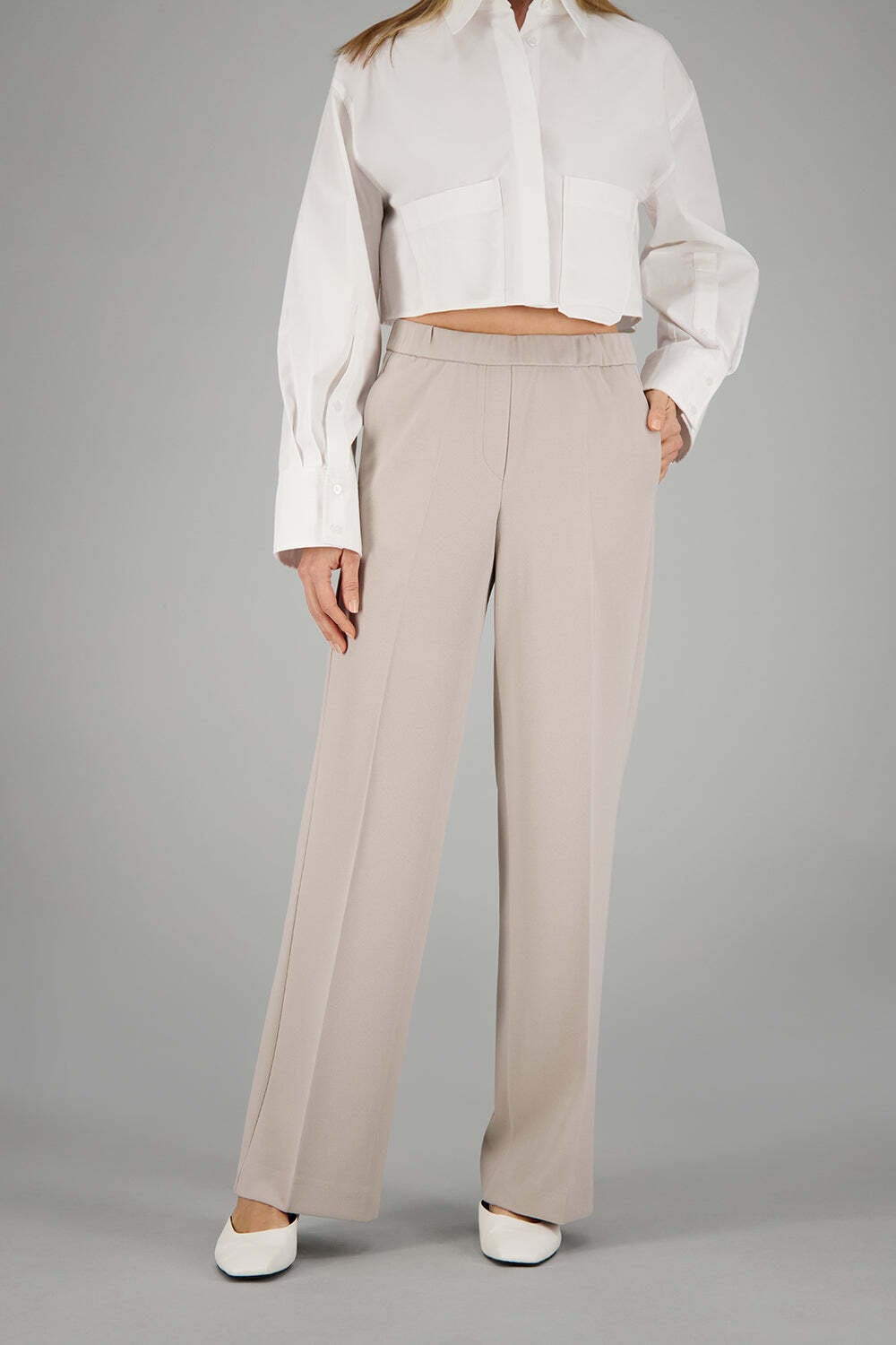 Die FRANCA800 Hose in Schwarz vereint Lässigkeit und Eleganz. Mit ihrem hohen Bund und dem Wide-Leg-Schnitt sorgt sie für eine moderne Silhouette, während der Gummizugbund optimalen Tragekomfort bietet. Bundfalten und Paspeltaschen am Gesäss runden den Look ab. ¿ Wide Leg ¿ Hoher Bund ¿ Medium Stretch ¿ Gummizugbund ¿ Seitliche Eingrifftaschen & Paspeltaschen