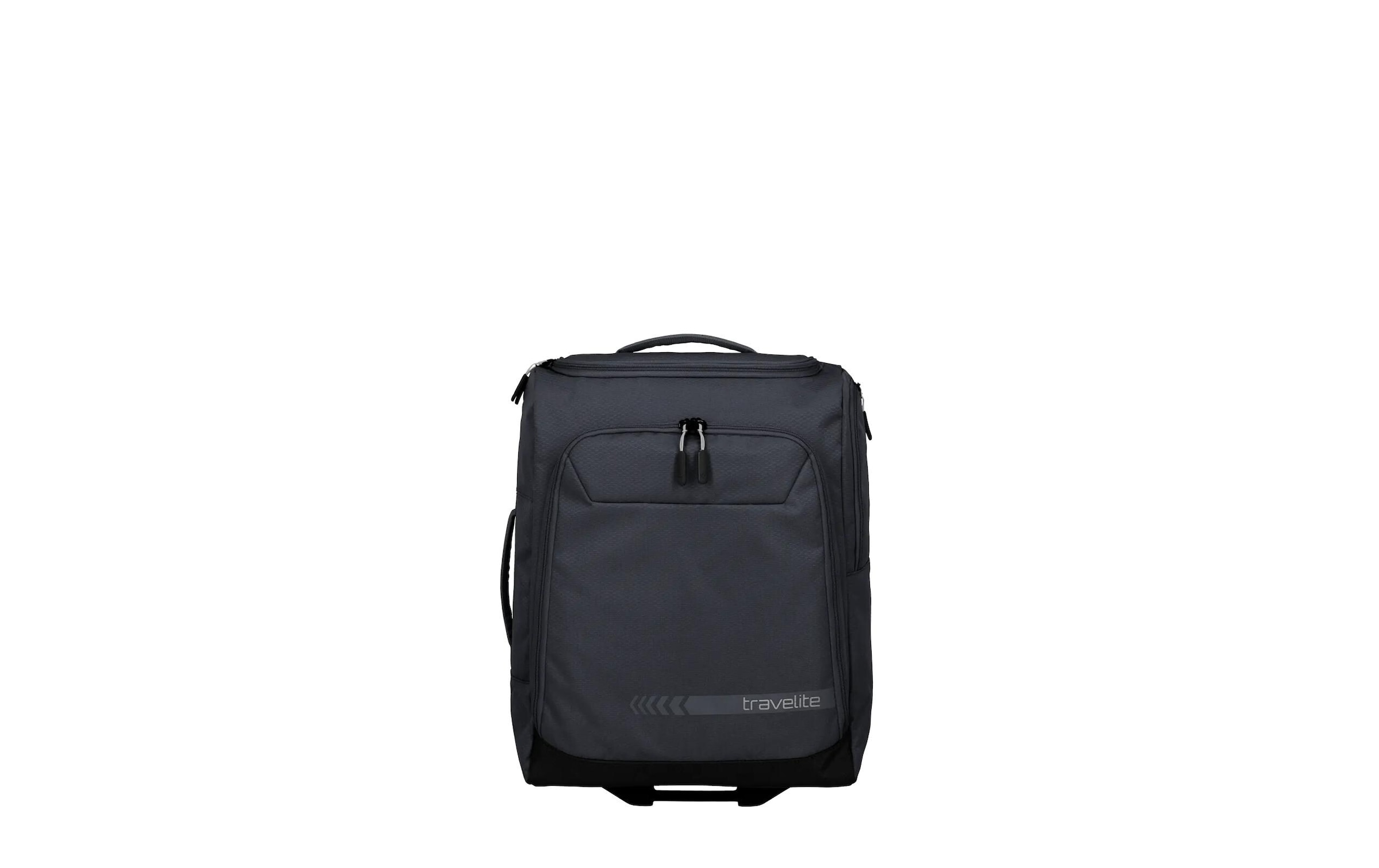 travelite Kick Off Rollenreisetasche S. Bodengriff zum leichten Anheben. Entwickelt für Sport und Freizeit. Material: Polyester. Mit Packgurten im Inneren. Volumen: 44 l. Zwei Reissversschlusstaschen aussen für Reisedokumente und Unterlagen.