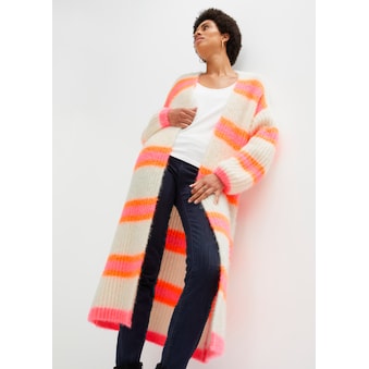 Ein Kombi-Partner so bunt wie das Leben! Strickmantel in farbenfrohem Colour-Blocking-Muster und aktueller Ripp-Optik. Lässig offene Form mit V-Ausschnitt. Aufwendig in Form gestrickt. 100% Polyacryl. Maschinenwäsche.