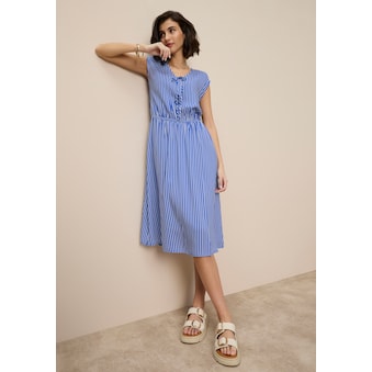 Maxikleid in Crinkle-Qualität, von sheego by Joe Browns. Die Spitze entlang V-Ausschnitt und Knopfleiste, die 3/4-Ärmel mit Gummizugbündchen sowie der weit schwingende Rock mit Volant und Spitze verleihen dem Kleid seine romantische, feminine Optik. Dekorative Knöpfe in Metalloptik fallen ins Auge, das breite Taillenband formt schmeichelnd die Figur. Für mehr Tragekomfort ist das Band im Rücken elastisch gearbeitet, ein nahtfeiner seitlicher Reissverschluss erleichtert das An- und Ausziehen.