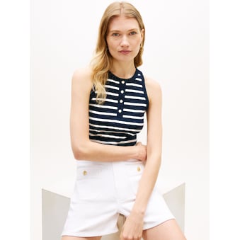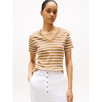 Kombistarkes Damen-Kurzarmshirt der Marke Tommy Hilfiger. Mit einem anliegenden Schnitt. Ausserdem hat das Shirt mit Knöpfen. Durch die weiche Qualität des Single Jerseys ist das Oberteil angenehm zu tragen.