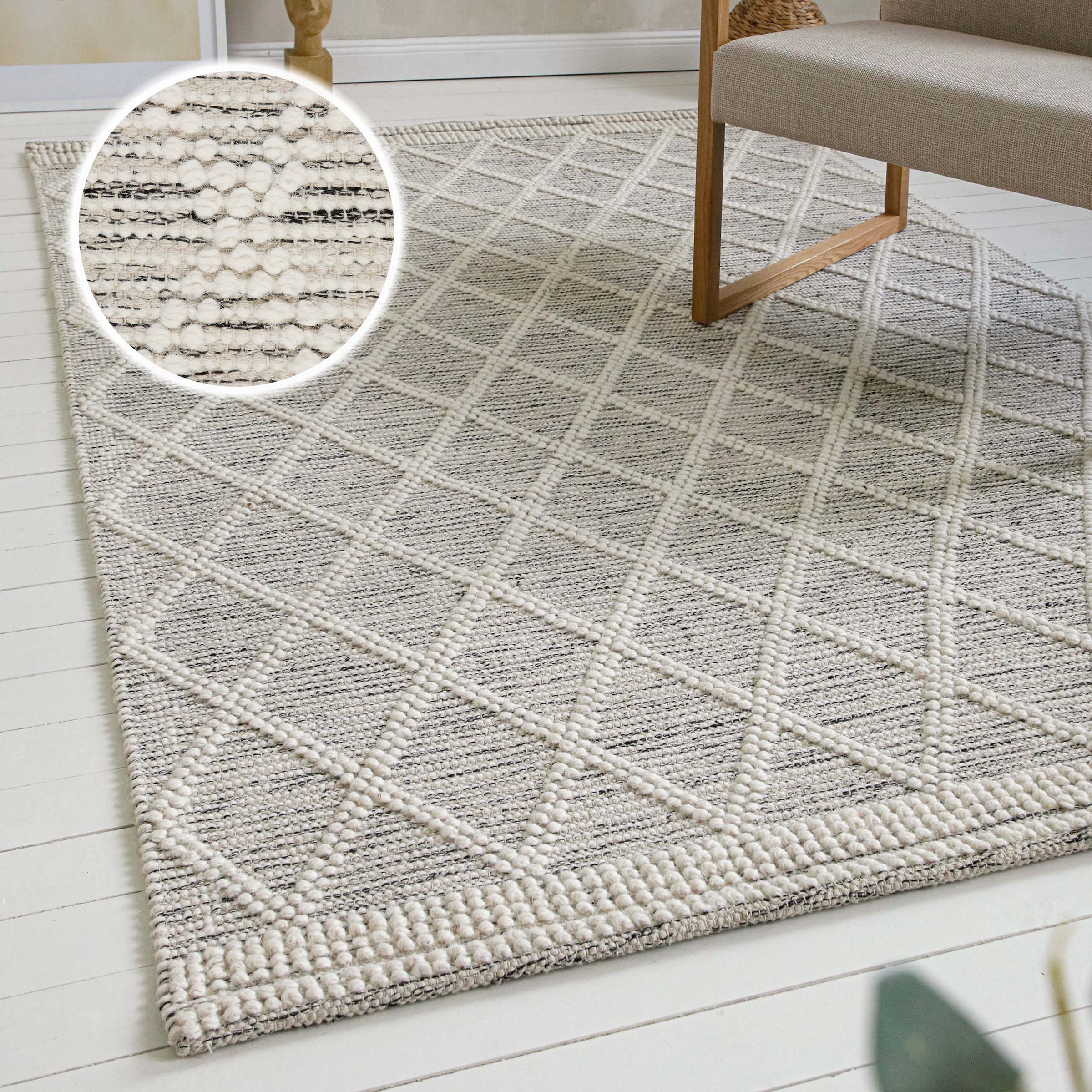 GOODproduct Teppich »Eleena« rechteckig 8 mm Höhe 70% Wolle, handgewebt, Raute, Hoch-Tief, Wohnzimmer, Naturfaser