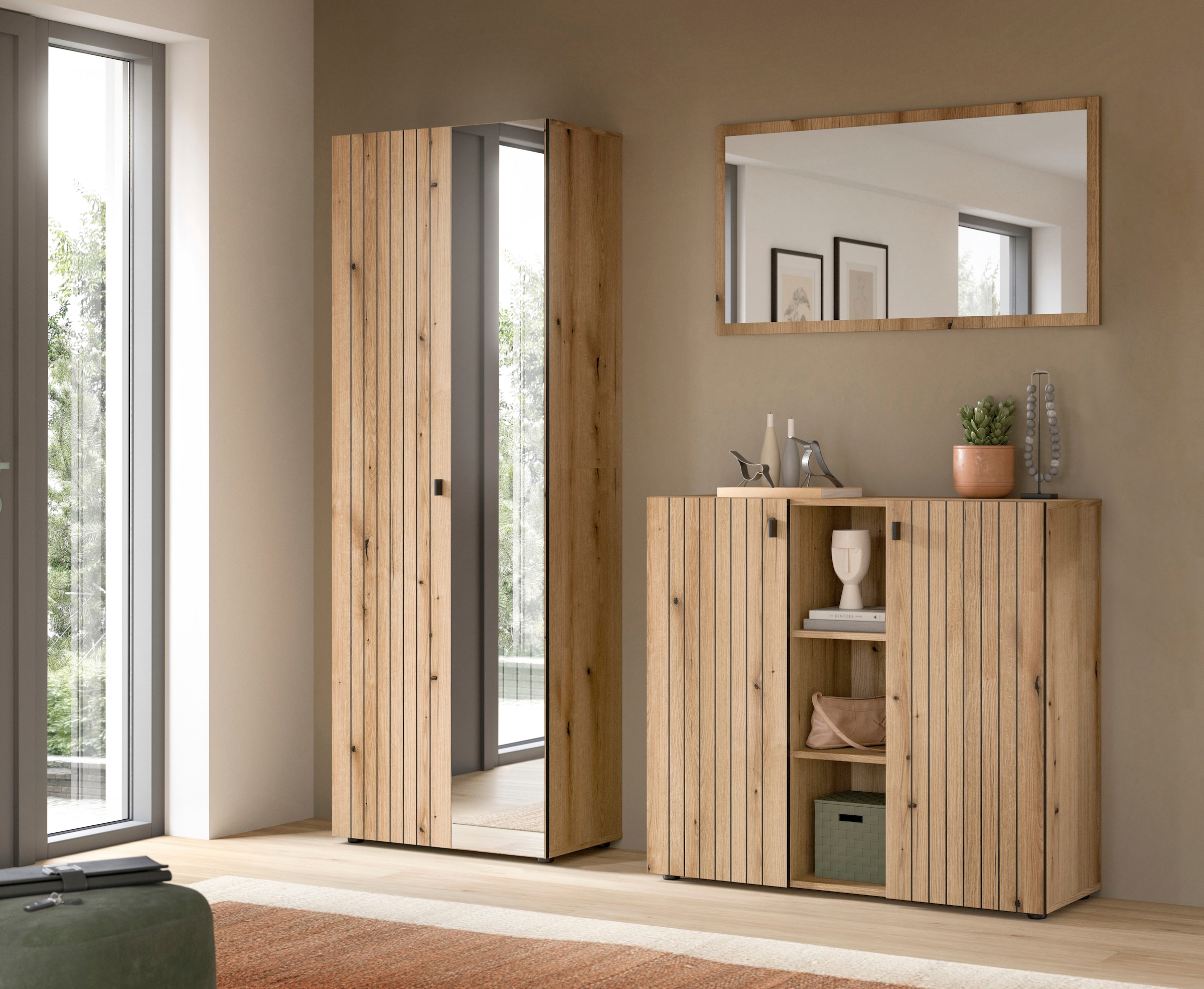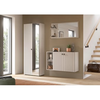 Set beinhaltet | Schuhkommode, Paneel, Sitzbank, Spiegel |