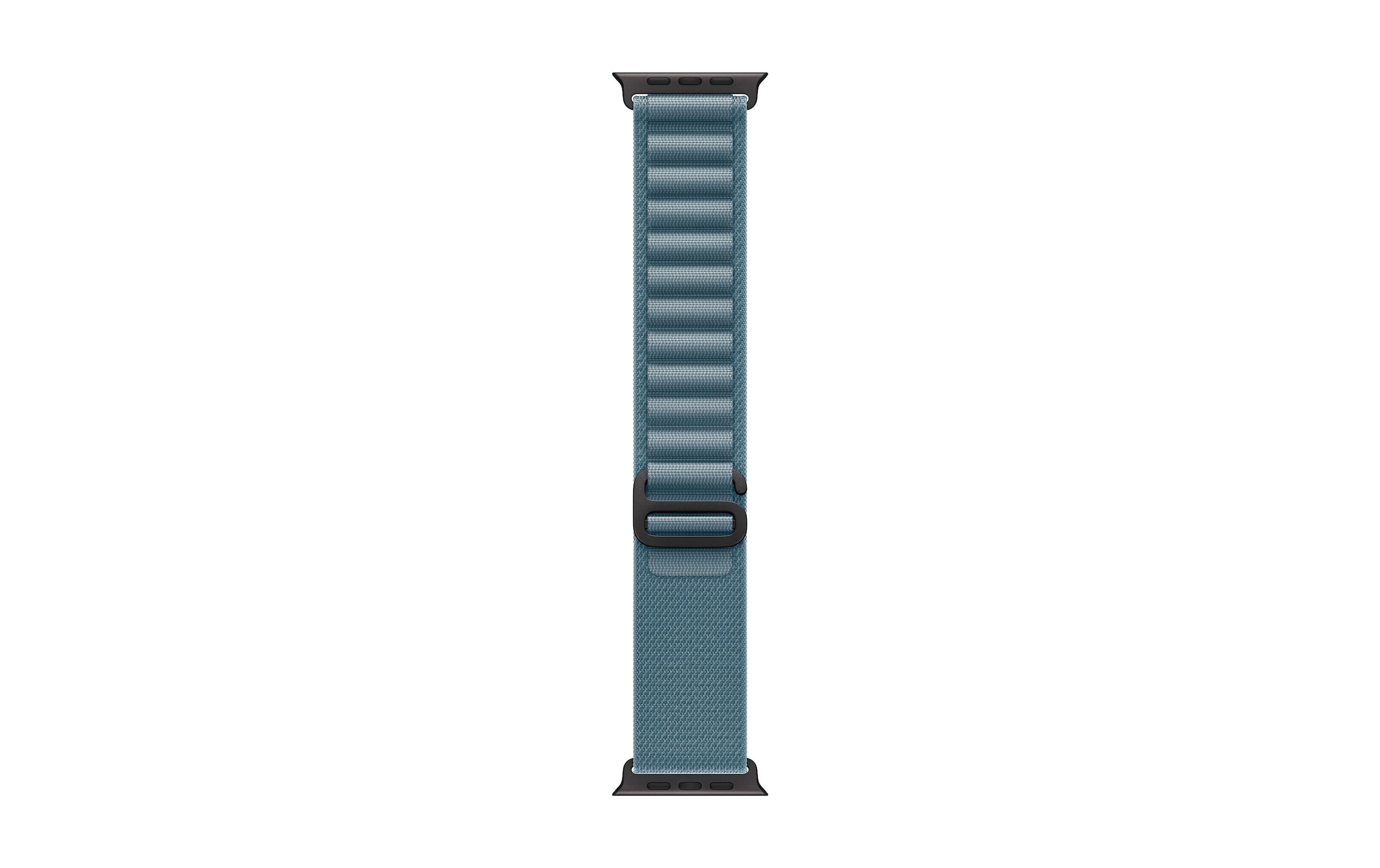 Apple Alpine Loop 49 mm. Auch kompatibel mit 44 mm, 45 mm und 46 mm Gehäusen. Entwickelt für die Apple Watch Ultra und passt am besten zur Gehäusegrösse 49 mm. Material: 100% recyceltes Polyester, 100% recyceltes Elasthan, 90% recyceltes Titan.
