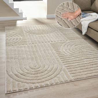 GOODproduct Teppich »Jonne, Boho-Design, Scandi, Designteppich« rund 20 mm Höhe Hoch-Tief, 3D Optik, skandinavischer Stil, Wohnzimmer, Schlafzimmer