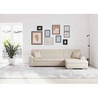 DOMO collection Ecksofa »Treviso viele Bezüge, auch in Cord, L-Form, B/T/H: 267/80/83 cm« wahlw. mit Bettfunktion, inkl. Zierkissen, Unser Dauertiefpreis
