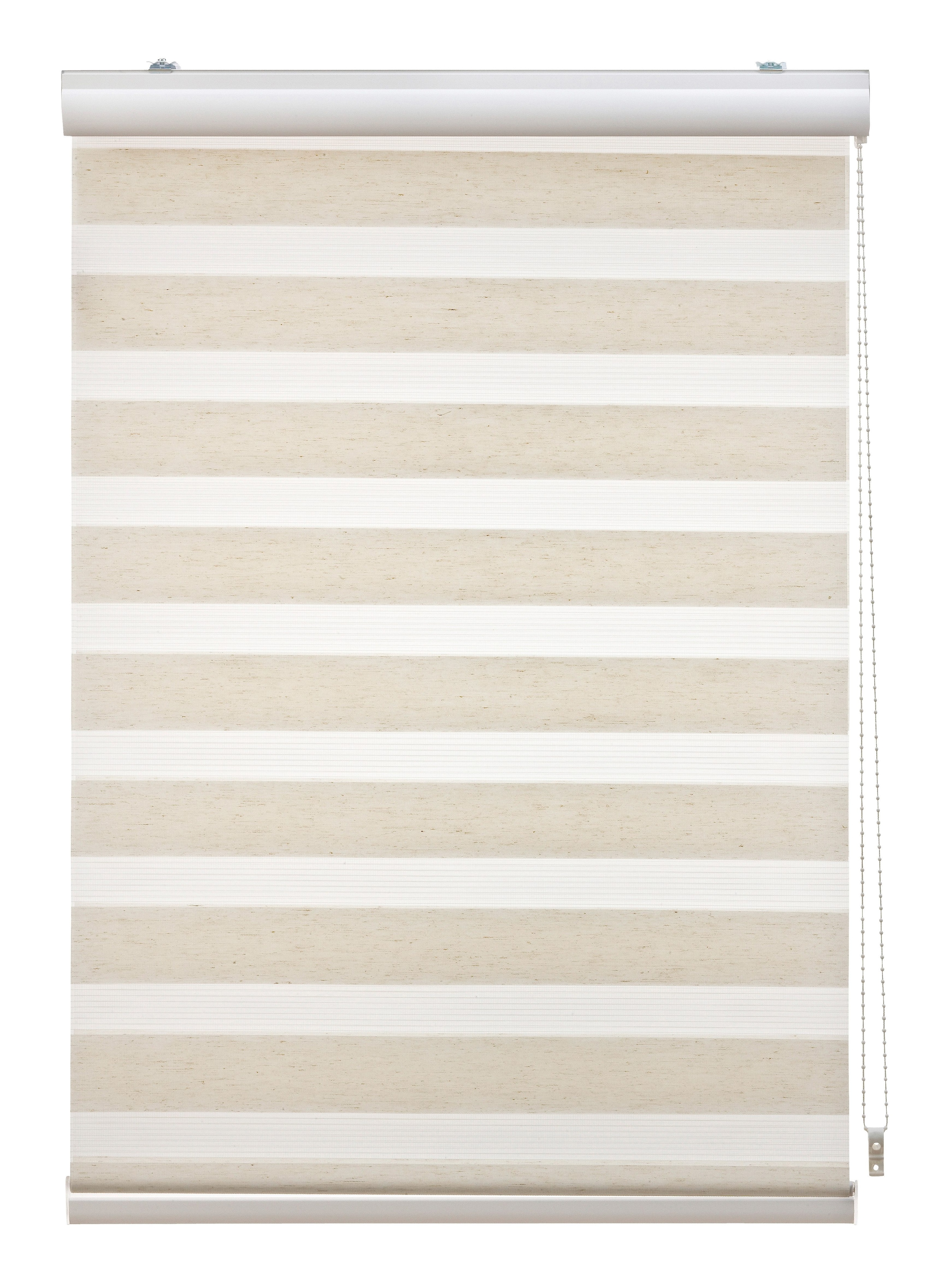 Doppelrollo von »Liedeco« im Festmass. Mit dem trendigen Doppelrollo können Sie individuell die Lichtverhältnisse in Ihren Wohnräumen regulieren. Der Stoff ist abwechseld in transparenten und blickdichten Streifensegmenten gewebt und verläuft doppelt gegeneinander. Durch diese Technik lassen sich vielfältige Lichteinwirkungen über den rechts positionierten Kettenzug steuern: von Durchsicht zu leichter Transparenz bis hin zu Sicht- und Lichtschutz. Die vormontierte Kopfschiene aus weiss beschichtetem Aluminium und mit weisser Blende wird mittels Trägern einfach auf dem oberen Fensterrahmen montiert.