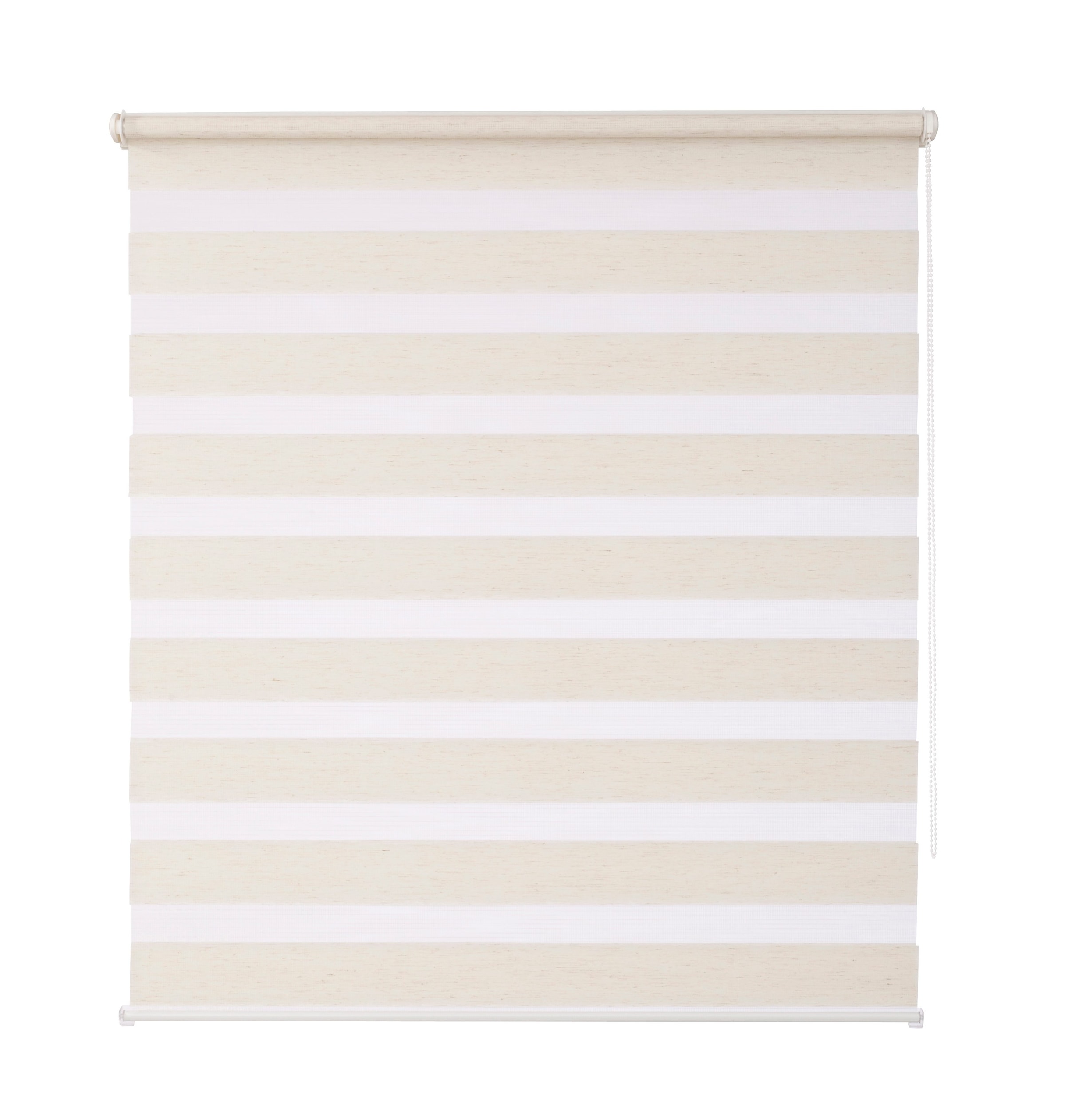 Klemmfix-Doppelrollo »Ancona« im Festmass. Superleichte Montage mit verstellbarem Klemmträger am Fensterrahmen ohne Bohren oder Schrauben. Die Technik lässt sich variabel in jeder Höheneinstellung über den Kettenzug steuern. Das Kettenzuggetriebe kann je nach Wunsch rechts oder links montiert werden. Durch den mitgelieferten Schnurhalter, wird das Pendeln der Kette verhindert . Zwei hintereinander parallel verlaufenden Stoffbahnen mit sich abwechselnden transparenten und blickdichten Streifen ermöglichen ein individuelles Lichtspiel. So lassen sich verschiedene Transparenzen von Durchsicht, leichter Transparenz bis hin zu Sicht- und Lichtschutz stufenlos regulieren. Auf diese Weise schaffen Sie sich gleichzeitig einen dekorativen Blickfang an Ihrem Fenster sowie einen Schutz vor neugierigen Blicken. Inkl. Montageanleitung und Zubehör.