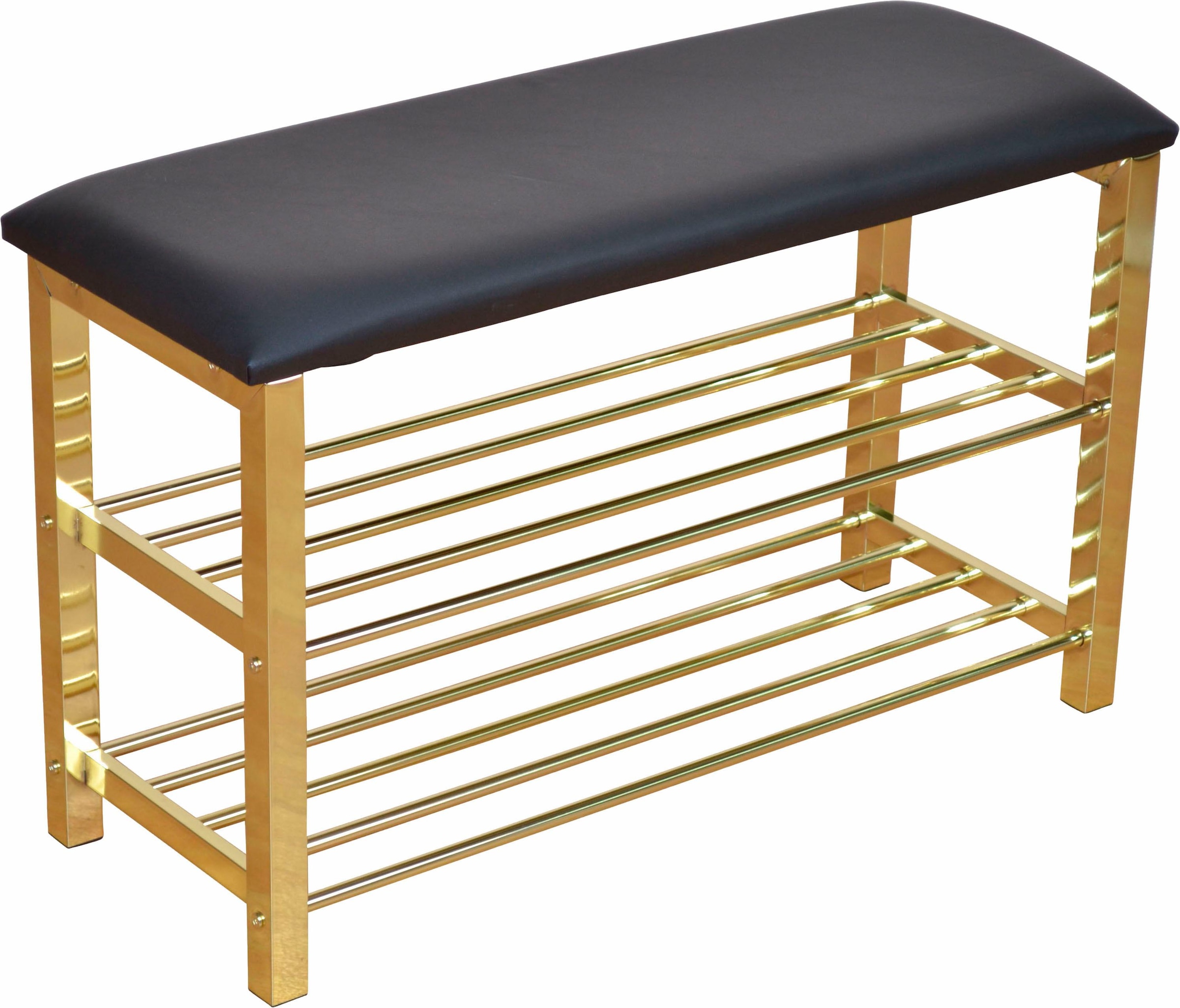 Das attraktive Möbel für den Eingangsbereich bietet als Schuhbank gleichzeitig eine bequeme Sitzmöglichkeit. Der Bezug besteht aus strapazierfähigem, pflegeleichtem Material und die Sitzfläche ist gepolstert. Zur Auswahl stehen tolle Farbtöne, passend zum Stil der vorhandenen Einrichtung. Das Gestell mit den Ablageflächen im Gitterdesign besteht aus stabilem Metall. Die Bank bietet Platz für mehrere Schuhpaare und sorgt für ein ordentliches Ambiente in der Diele.