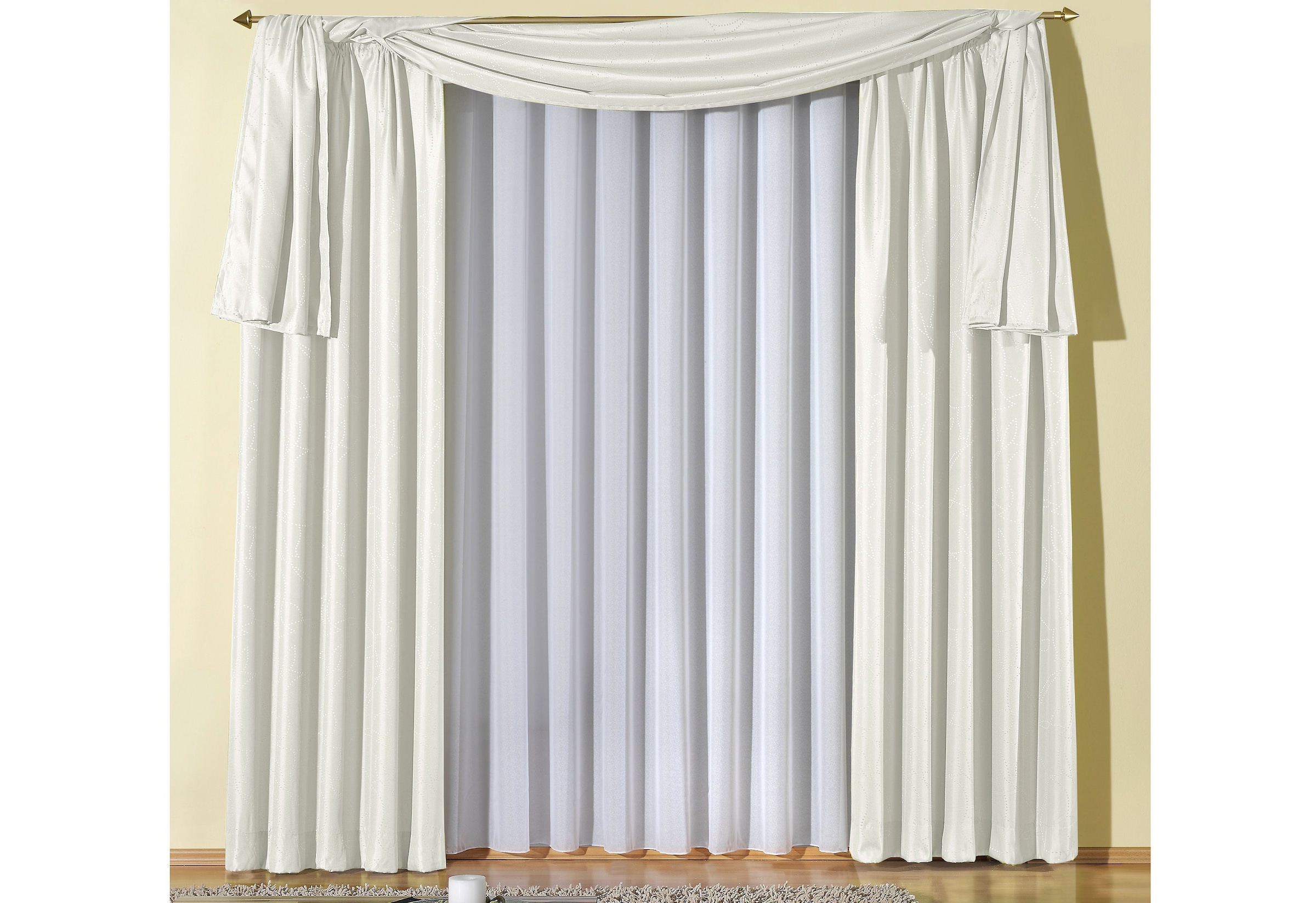 Hinweis Dekoration | Die angegebenen Masse sind Stoffmasse.;Am Fenster fertig dekoriert, reduziert sich die Breite um ca. die Hälfte. |