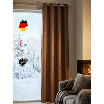 Hinweis Materialart | Chenillequalität bezeichnet einen Vorhangstoff, der aus voluminösem Garn gewebt wird. Das schwere Gewebe mit samtiger Oberfläche bietet sowohl Kälte- als auch Lärmschutz. |
