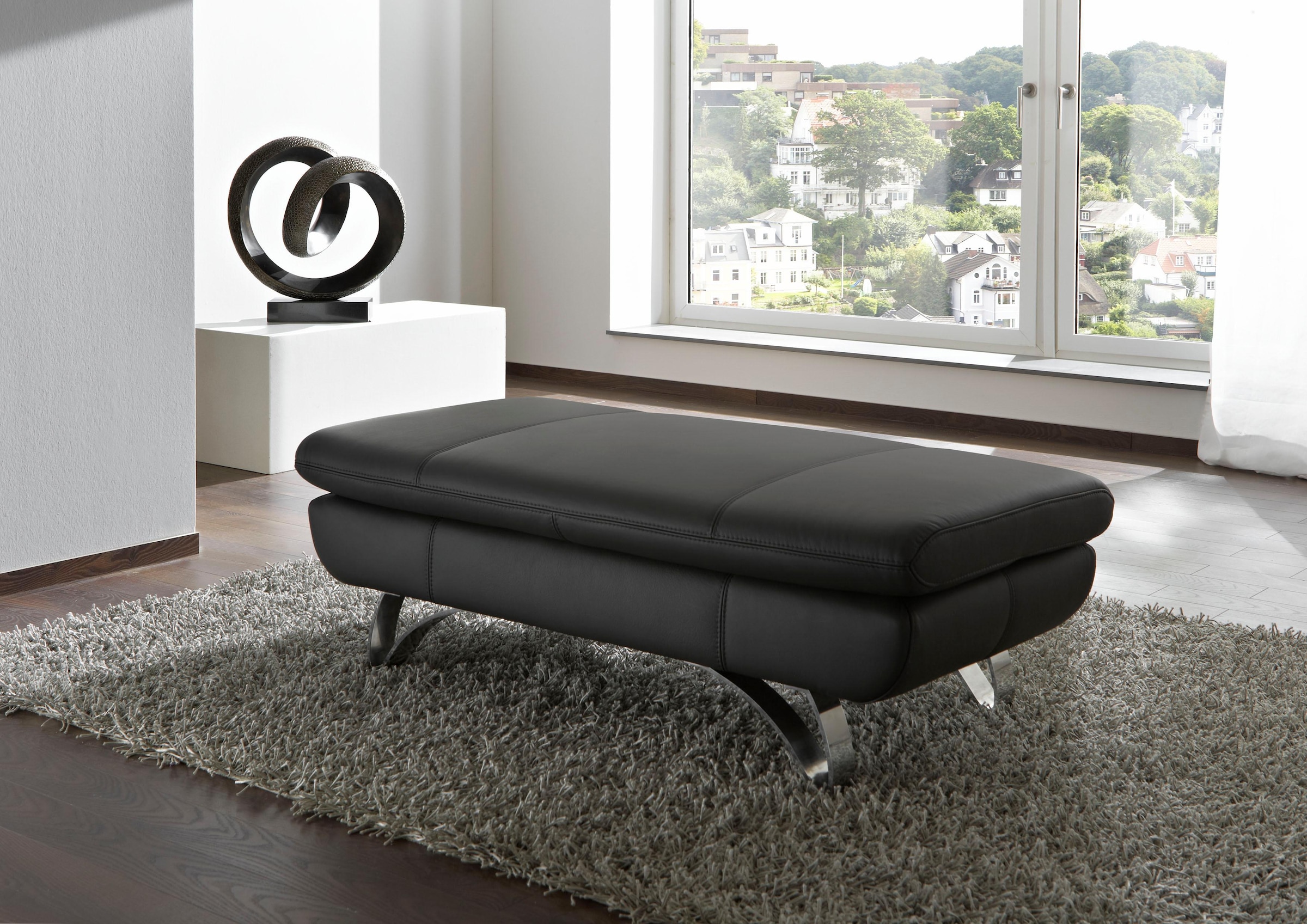 Elegante Polstergarnitur. Sehr angenehmes Sitzgefühl. Füsse in Chrom. Mit Rückenhochstell-, und Armlehnfunktion. 3 verschiedene Bezugsqualitäten. Gestell: alle tragenden Teile aus Buche Massivholz. Alle Rücken-Spannteile echtbezogen. Sitzpolsterung: Nosag Unterfederung mit hochwertigem Polyätherschaum.