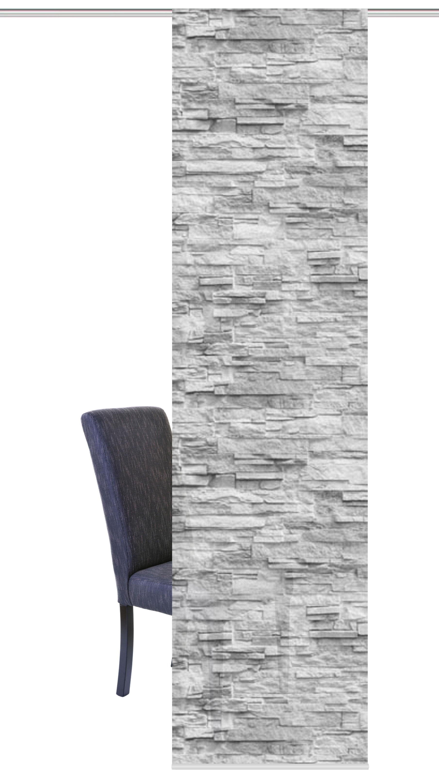 Hinweis Dekoration | Eine Schiebegardine ist eine schmale, glatt hängende Stoffbahn, die sich sowohl als Sichtschutz als auch zur Raumteilung eignet. Durch die Schiebetechnik sind Schiebegardinen sehr flexibel einsetzbar. |