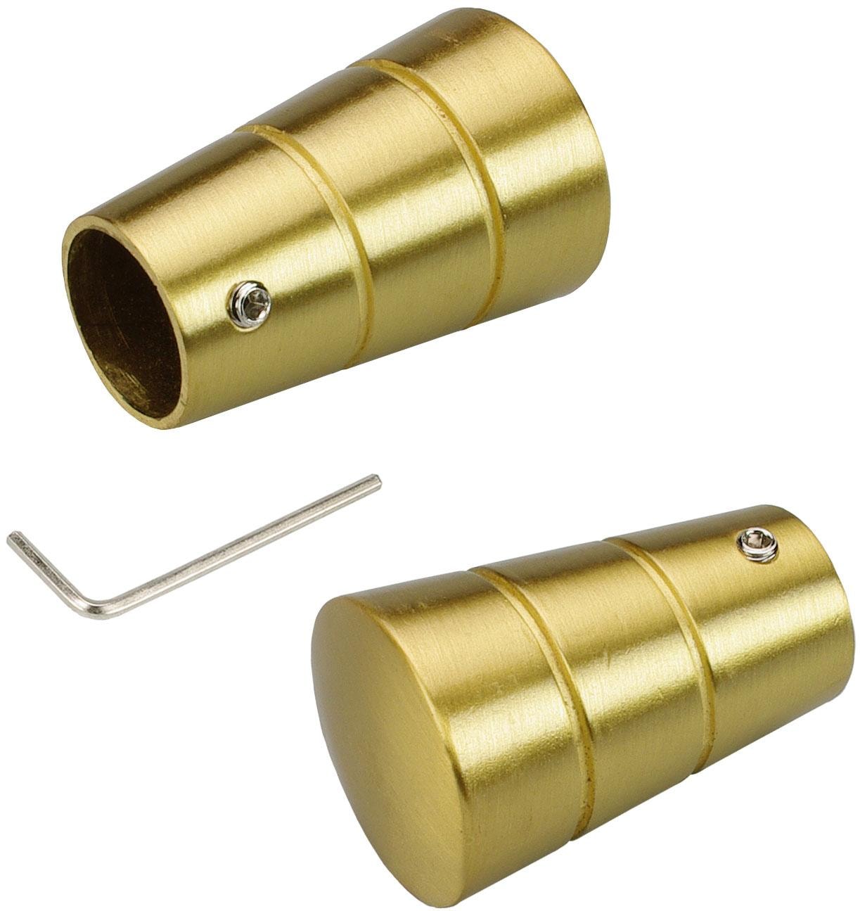 Dieses Endstück »Concav« ist für alle Gardinenrohre und Innenlaufprofile mit einem Ø von 16 mm passend. Lieferumfang: 2 Stück. Länge des Endstücks: 4,5 cm. Kombinieren Sie verschiedene Farben, so zum Beispiel Stange in Titan und Endstücke und Träger in Goldmatt. So entsteht eine ganz individuelle Gardienstange speziell nach Ihren Wünschen. Für eine komplette Gardinenstange benötigen Sie mindestens 1 Rohr, 2 Endstücke, 2 Träger (ab 240 cm Rohrlänge - 3 Träger), sowie einen Gardinenring je 10 cm Stangenlänge. . Material: 100% Metall.