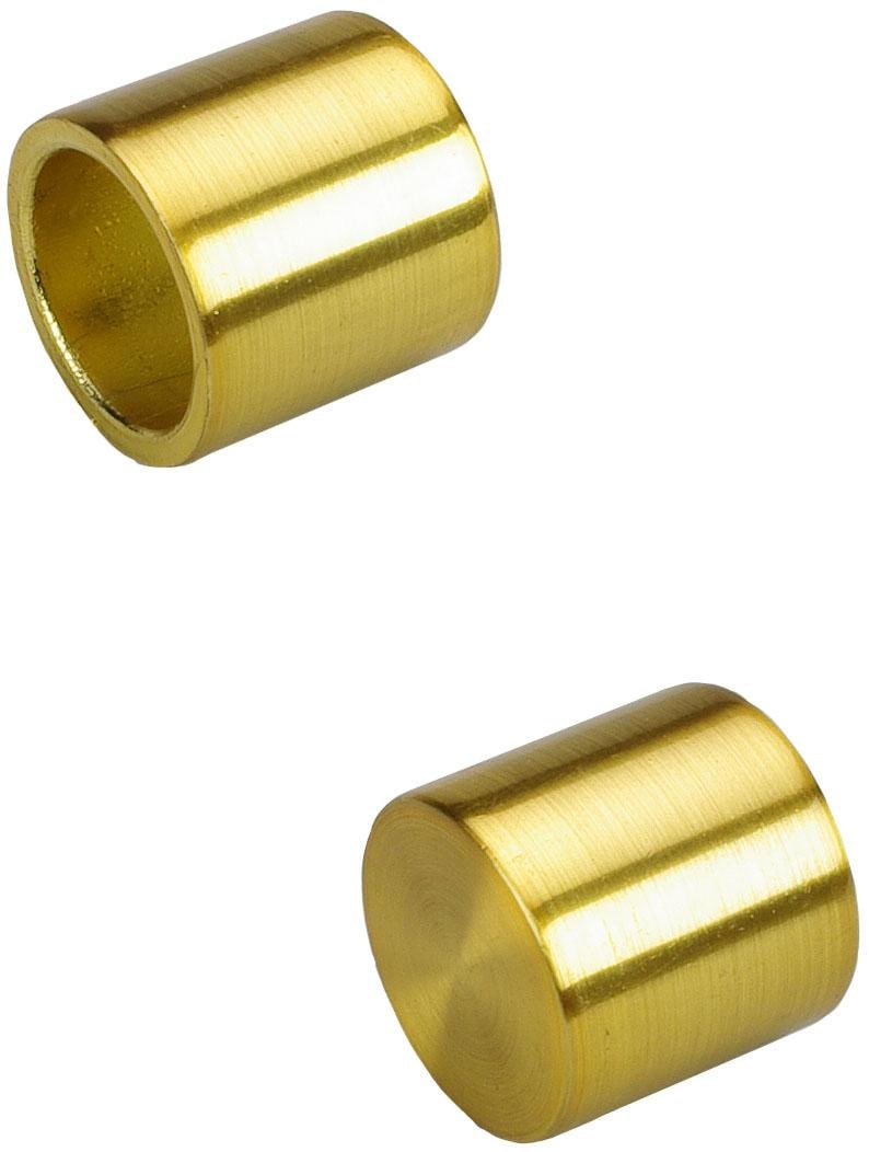 Dieses Endstück »Cap« ist für alle Gardinenrohre und Innenlaufprofile mit einem Ø von 16 mm passend. Lieferumfang: 2 Stück. Länge des Endstücks: 2 cm. Kombinieren Sie verschiedene Farben, so zum Beispiel Stange in Titan und Endstücke und Träger in Goldmatt. So entsteht eine ganz individuelle Gardienstange speziell nach Ihren Wünschen. Für eine komplette Gardinenstange benötigen Sie mindestens 1 Rohr, 2 Endstücke, 2 Träger (ab 240 cm Rohrlänge - 3 Träger), sowie einen Gardinenring je 10 cm Stangenlänge. . Material: 100% Metall.