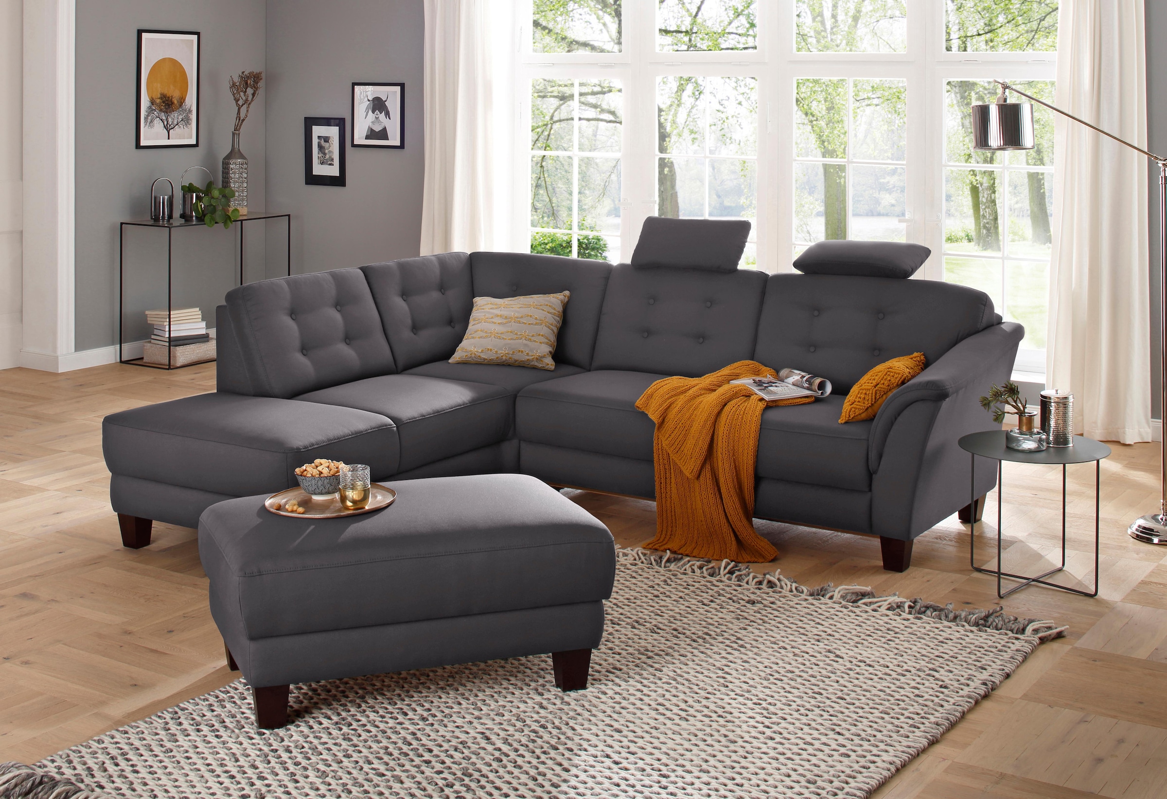 Home affaire Ecksofa »Trondheim L-Form« mit Federkern und Knopfheftung im Rücken, Füsse Buche dunkel
