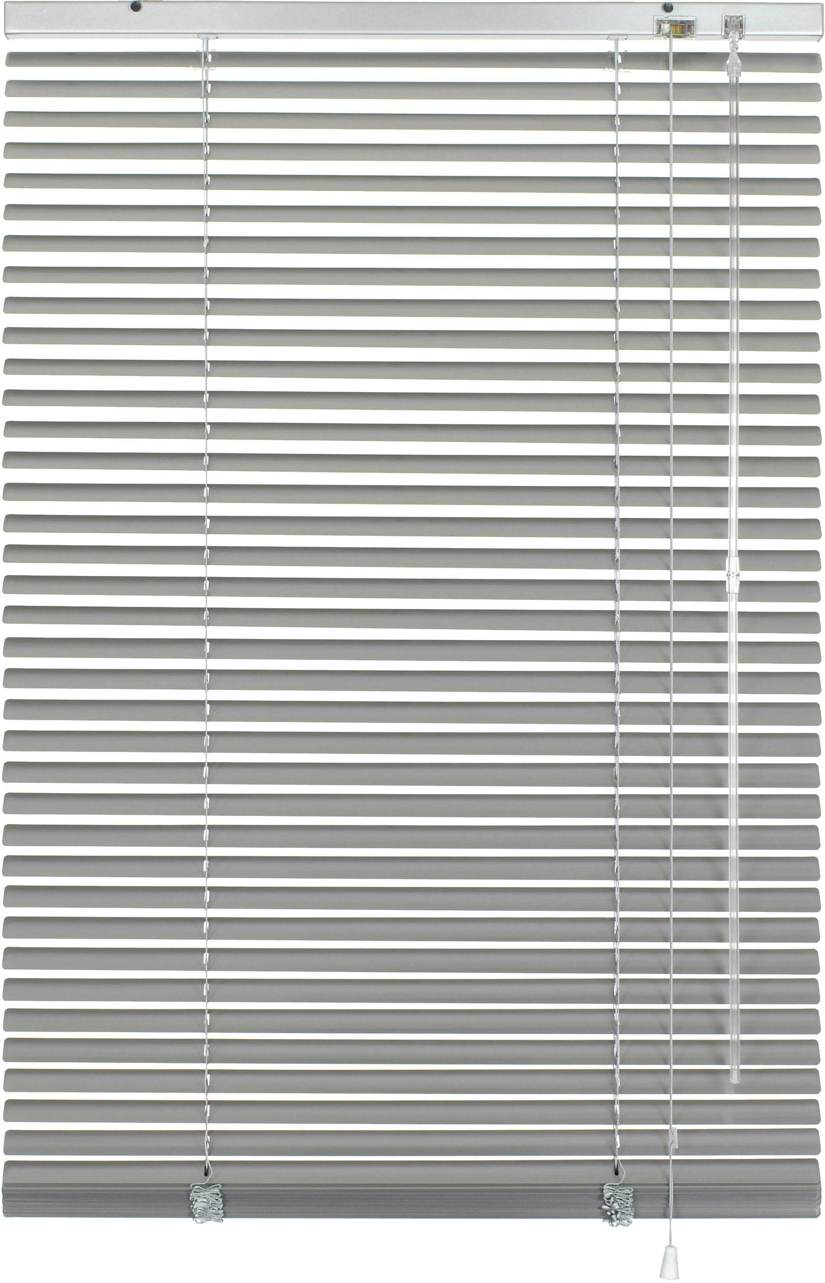 Aluminium-Jalousien - Der Klassiker am Fenster Kühl und modern, ein zeitloser Klassiker in vielen Grössen. Mit einer Aluminium-Jalousie machen Sie jeden Raum zu Ihrem Lieblingsort. Unterschiedliche Fensterbreiten können mit den verschiedenen Abmessungen perfekt abgedeckt werden und Sie gestalten jedes Fenster individuell nach Ihren Wünschen. Die Aluminium-Lamellen mit einer Breite von 25 mm sind lichtecht, flexibel und dennoch formstabil. Öffnen und schliessen lässt sich die Jalousie über eine farblich angepasste Bedienschnur, durch den mitgelieferten Wendestab aus Acryl zum Drehen der Lamellen bedienen Sie die Jalousie kinderleicht. Ein Spiel mit Licht und Schatten, das wunderschöne Lichteffekte in Ihre Wohnräume bringt. Zur Pflege und Reinigung die Jalousie einfach schliessen und mit einem Staubwedel oder einem feuchten Tuch von beiden Seiten abwischen. Einfache und rückstandslose Befestigung auf dem Fensterrahmen durch die mitgelieferten Klemmträger. Die Montage an der Wand oder der Decke ist auch möglich durch das mitgelieferte Befestigungsmaterial. Herstellerhinweis: Die Farbwiedergabe der Abbildung bzw. Bildmaterials kann ggf. vom Originalartikel des Herstellers abweichen.