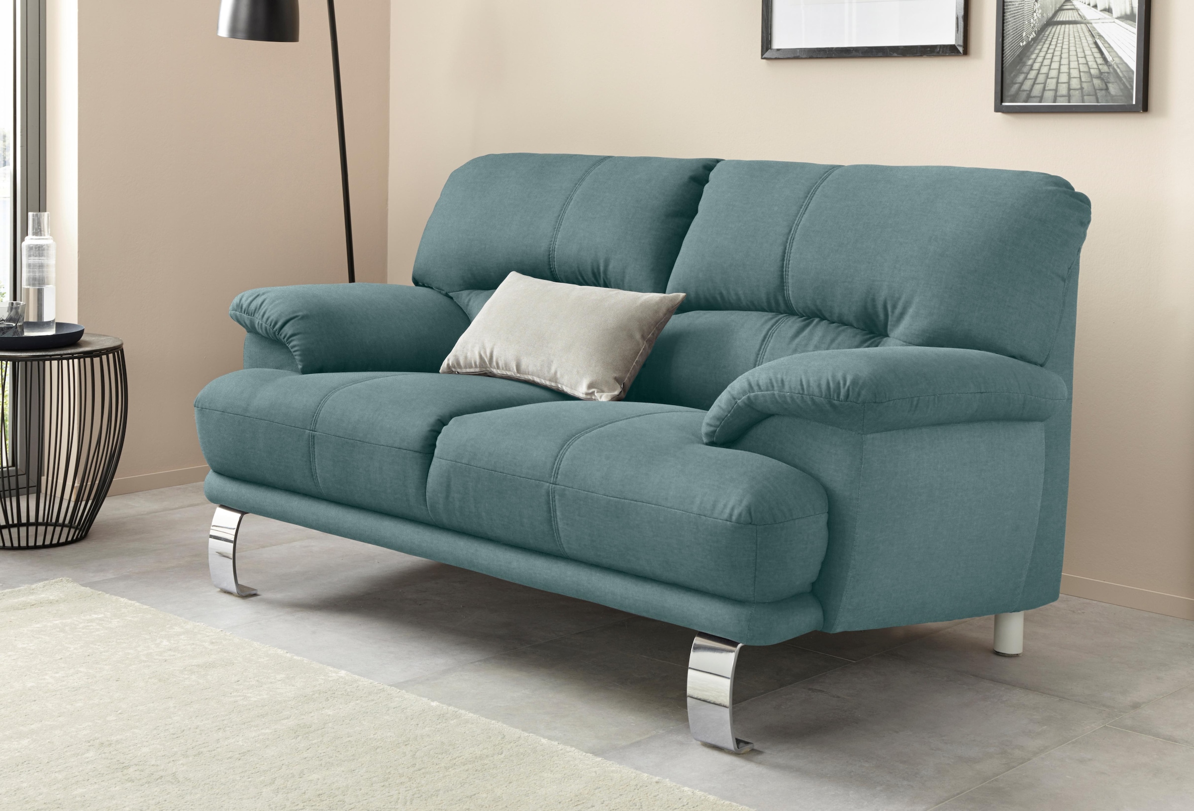 Im schicken Design bereichert dieses 3-Sitzer Sofa die eigenen vier Wände. Es begeistert mit eleganten Füssen in Chromoptik und zeichnet sich durch eine schlichte Farbgestaltung aus. Mit seiner zurückhaltenden Optik kann das Polstersofa individuell kombiniert und unkompliziert zum bestehenden Interieur ergänzt werden. Von Vorteil: Es ist frei im Raum stellbar. Die Couch besitzt eine atmungsaktive Polyätherschaum-Polsterung, die einen angenehmen Komfort beim Sitzen ermöglicht. Sie ist hochwertig verarbeitet und punktet mit der Fertigung aus FSC®-zertifiziertem Holzwerkstoff. Sorgt für ein stilvolles Wohnambiente: das 3-Sitzer Sofa im schicken Design.