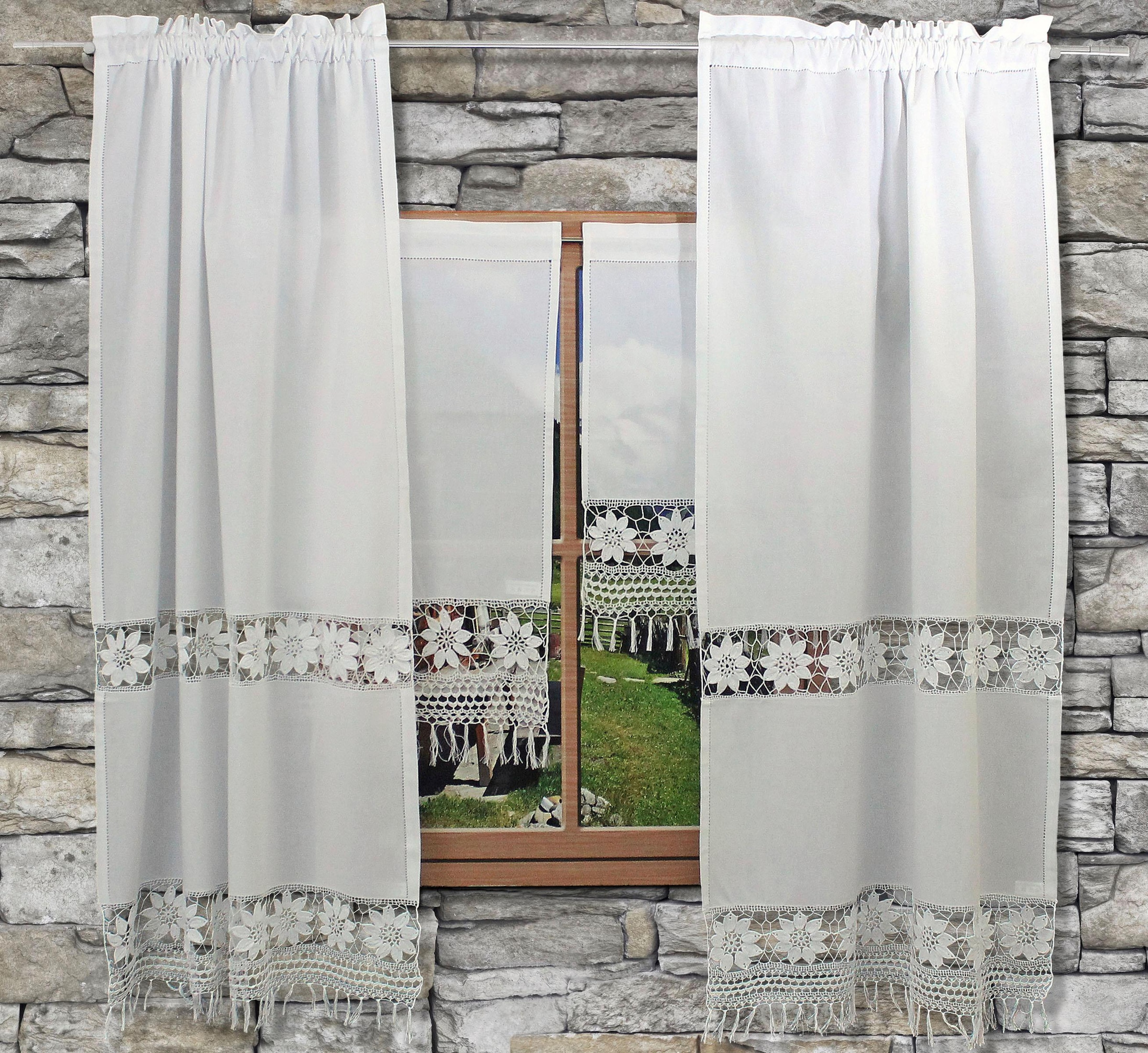 HOSSNER - ART OF HOME DECO Gardine »Zugspitze« Stangendurchzug 1 Stk. tlg. Häkelspitze - ECHTE HANDARBEIT