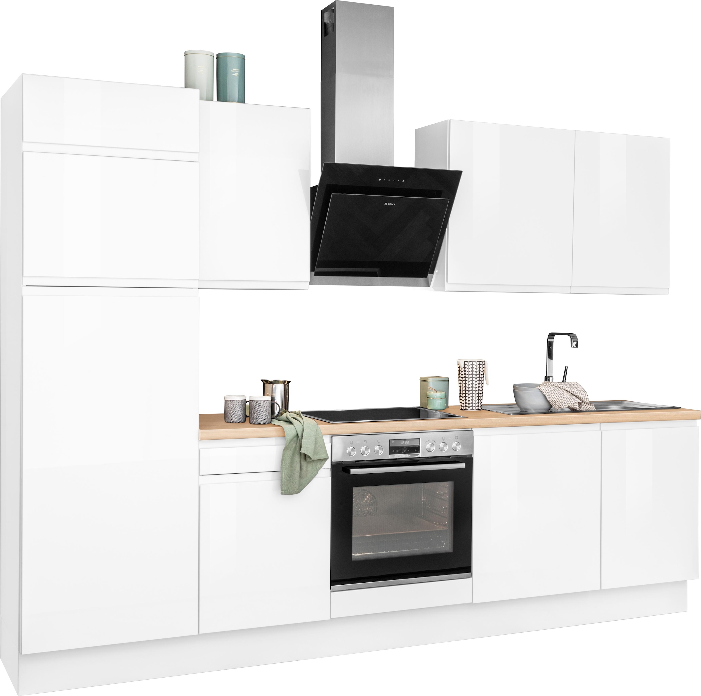 KOCHSTATION Küchenzeile »KS-Avio« 38 mm starker Arbeitsplatte und Hochglanz-Fronten, Breite 280 cm