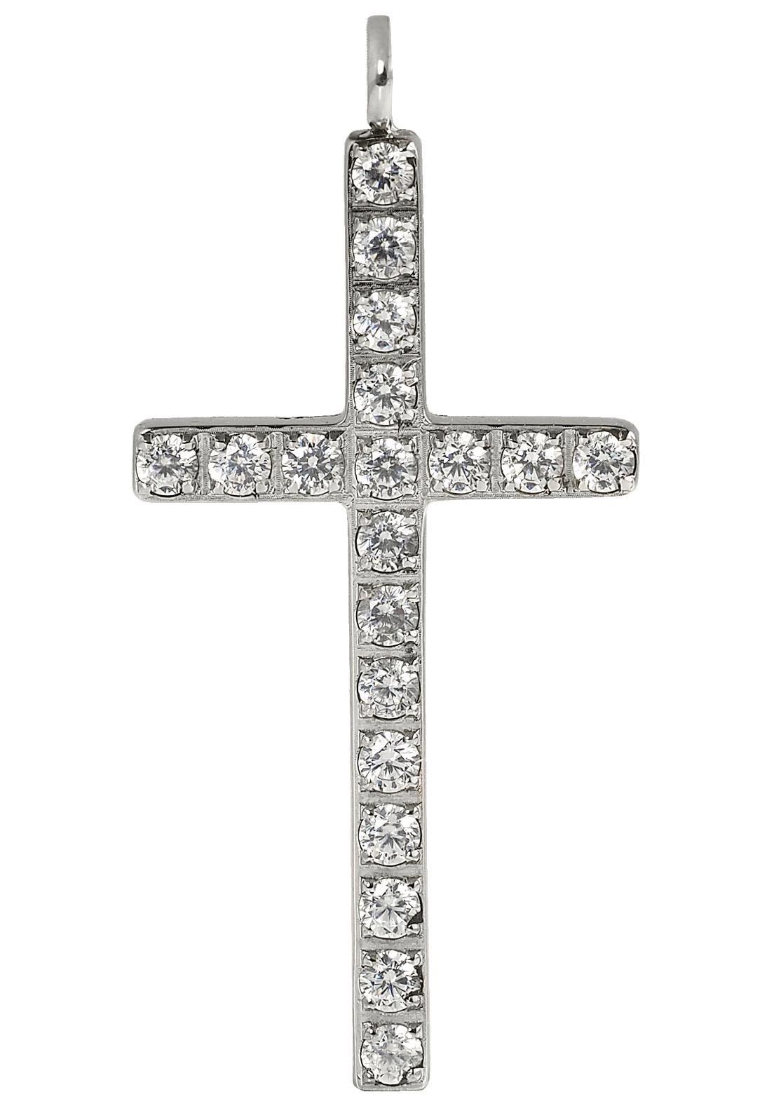Ein Schmuckstück mit Aussagekraft: Das Kreuz gilt als religiöses Symbol und gehört zu den beliebtesten Schmuckmotiven. Funkelnde Zirkoniasteine (synth.) verleihen dem bedeutungsvollen Accessoire den letzten Schliff.