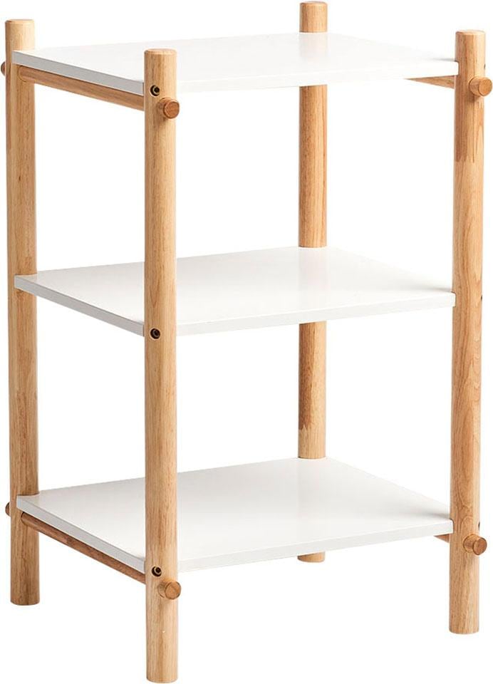 Dieses Kinder-Regal im Scandi-Look wurde aus MDF und Gummibaumholz hergestellt und bietet Stauraum auf drei verschiedenen Ebenen. Das trendige Regal ist ein echter Hingucker im Kinderzimmer und kann durch die kindgerechte Höhe problemlos von Ihrem Nachwuchs genutzt werden. So übt es sich schon früh, ganz einfach Ordnung im eigenen Reich zu halten. Das Regal ist sehr pflegeleicht und kann schnell und unkompliziert selbst montiert werden.
