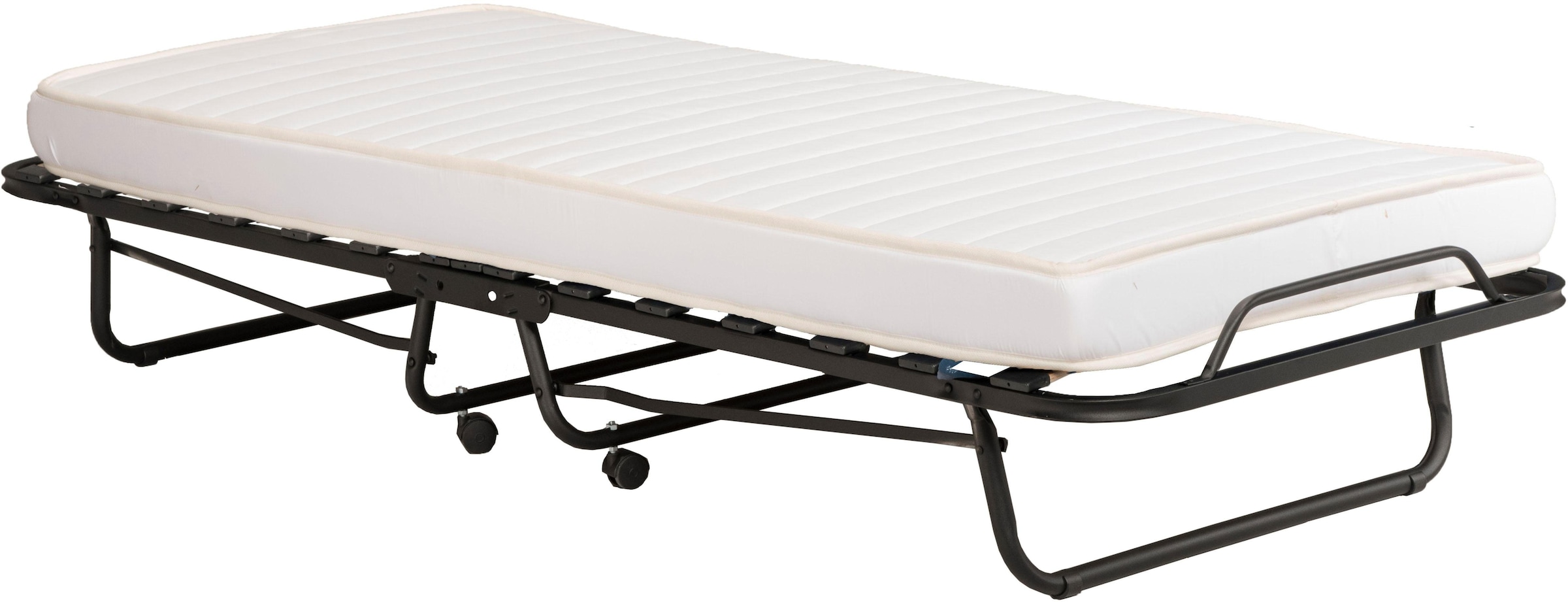 Das klappbare Gästebett inklusive einer praktischen Staubschutzhülle zur Lagerung punktet durch seine hohe Funktionalität. So ist jeder Haushalt auf Besuch bestens vorbereitet. Das ideale Bett für Gäste auf Kunststoffrollen ist schnell aufgestellt und platzsparend zusammenklappbar. Damit ist im Handumdrehen ein gemütliches Gästebett aufgestellt und ebenso einfach wieder verstaut. Das Metallgestell inklusive einer Schaumstoffmatratze ist in 4 Breiten bestellbar. Ein durchdachtes und funktionales Möbelstück mit platzsparender Eigenschaft: Das klappbare Gästebett inklusive Staubschutzhülle ist eine praktische Bereicherung für jeden Haushalt.